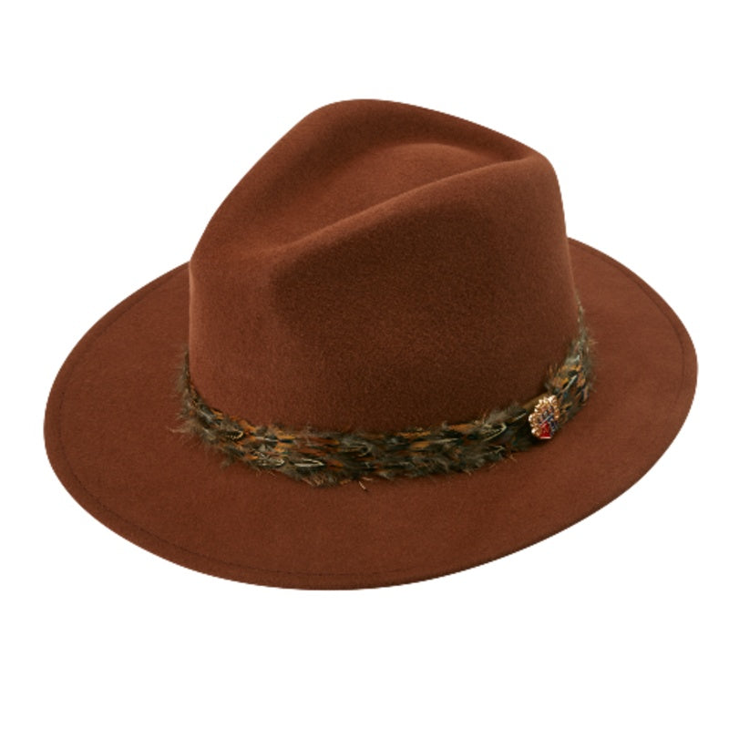 The Alan Paine Richmond Pheasant Wrap Ladies Felt Hat is an elegant piece of headwear with a feather band which will add a noticeable flash of colour to any outfit in town or country.