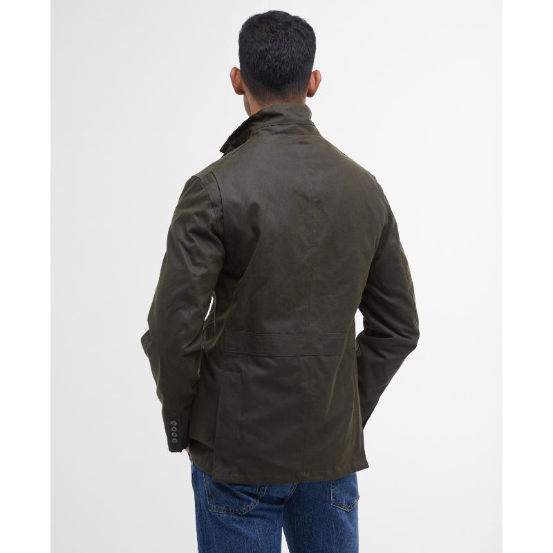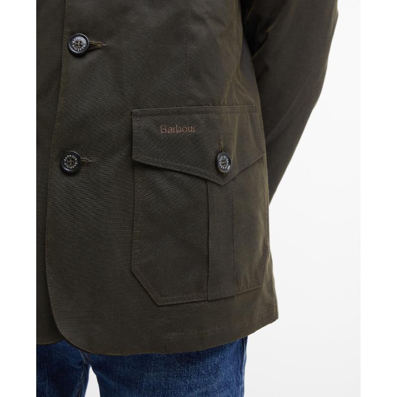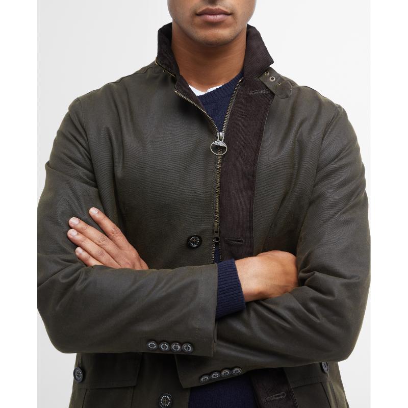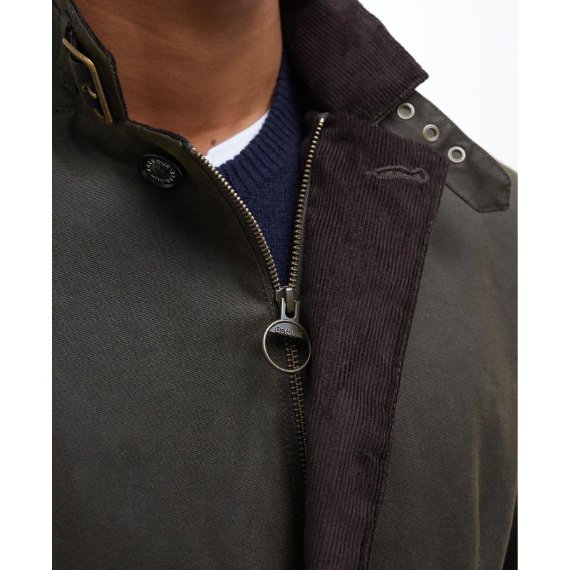 This heavyweight Barbour Lutz Wax jacket combines durability with classic style. Featuring two pleated pockets for practical storage, it is finished with a corduroy collar and a buckle-fastened collar strap for adjustable comfort. The action back and stitched half-belt detail enhance mobility and provide a tailored fit, making it an ideal choice for outdoor wear in challenging weather conditions.