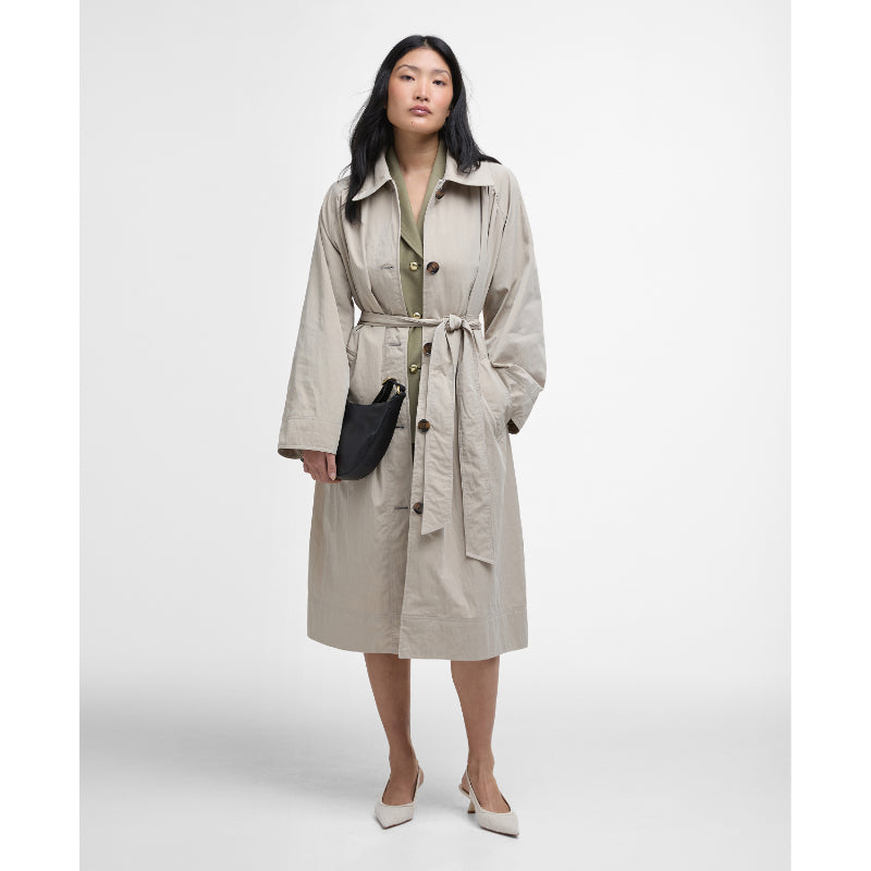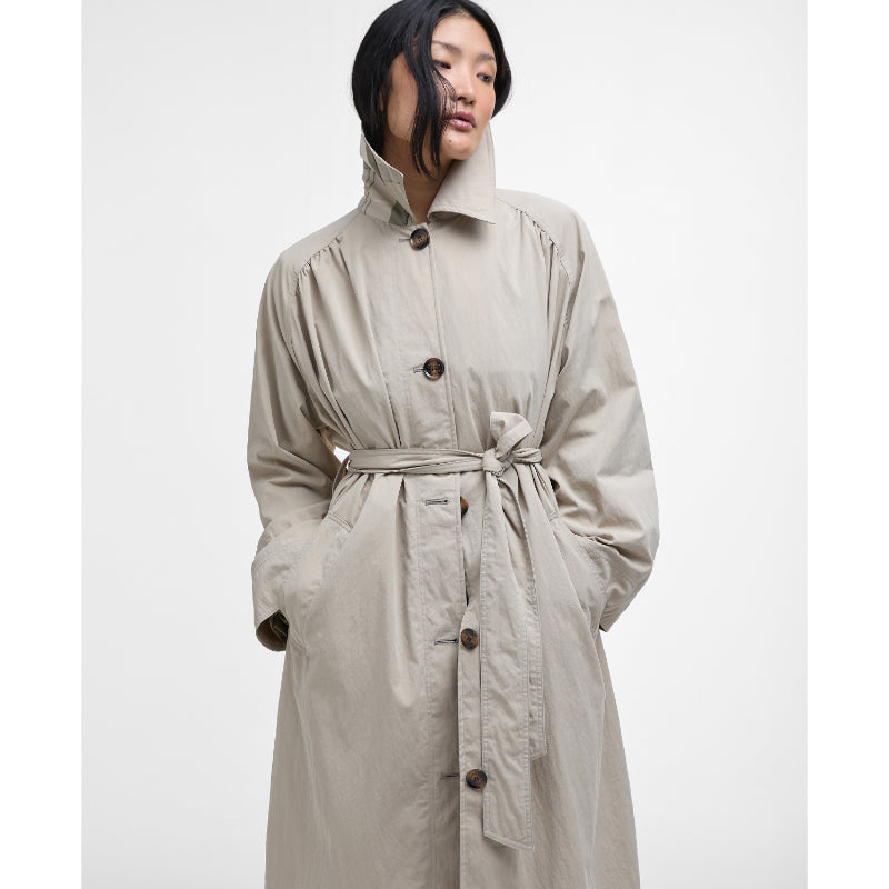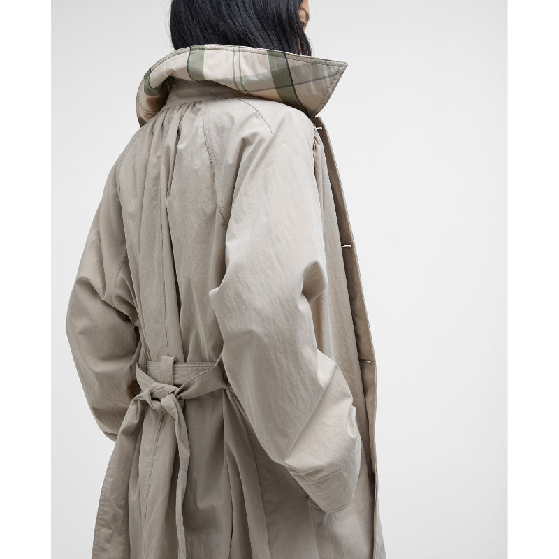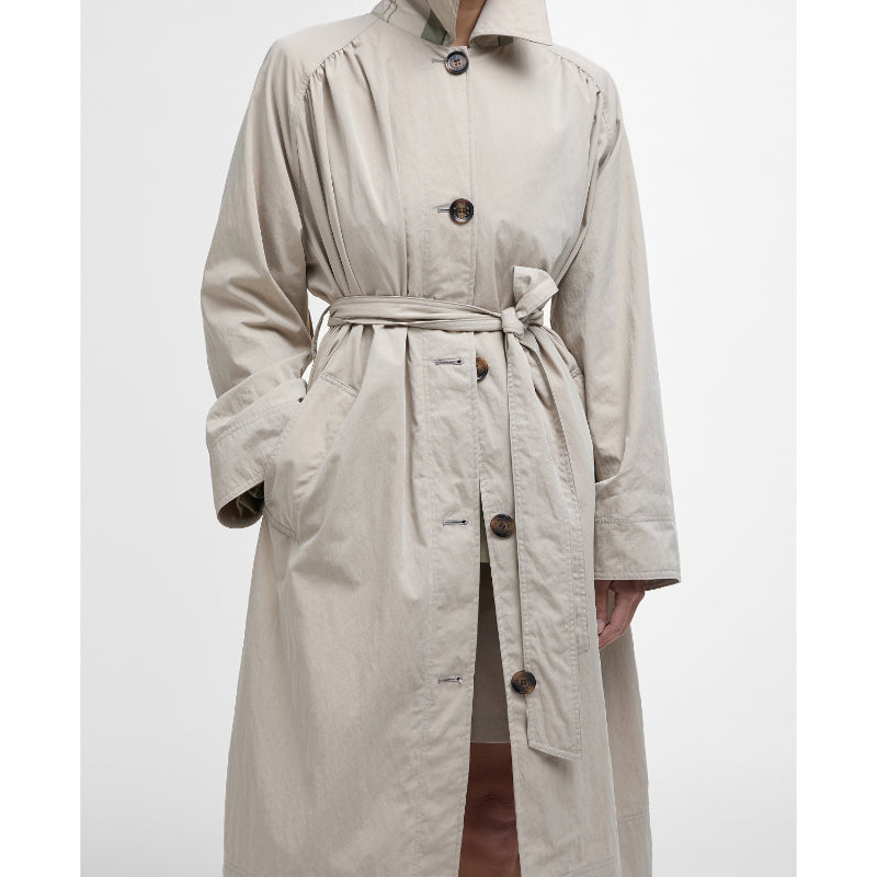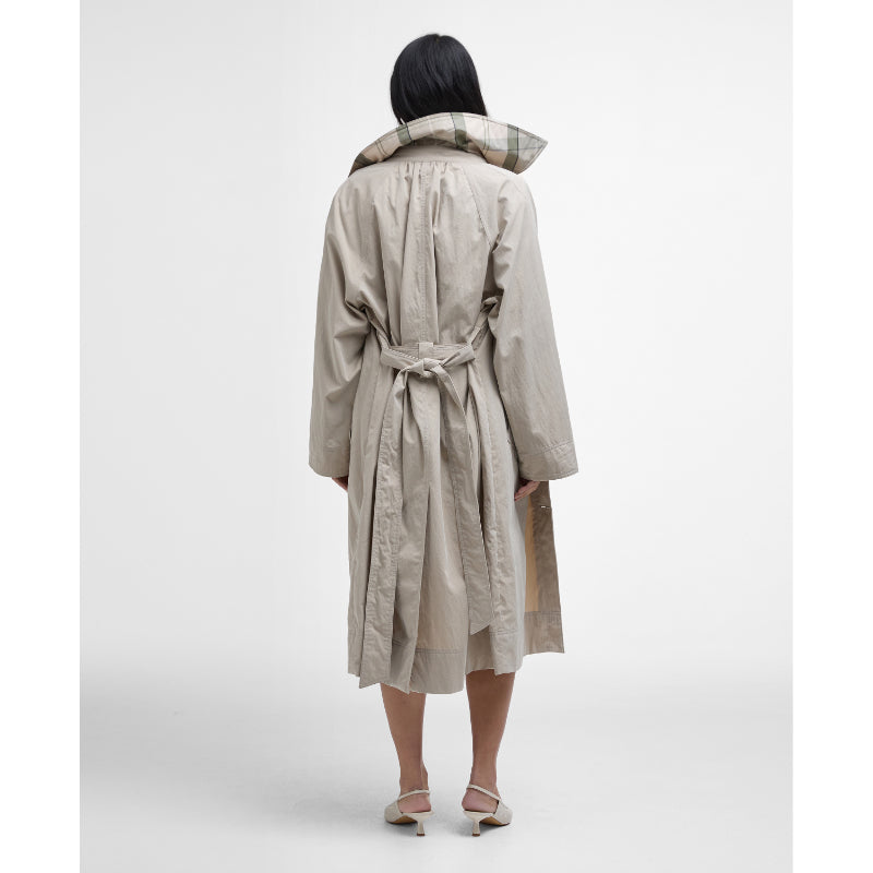 Barbour Garbo Ladies Showerproof Trench Coat - Light Sand/Rosemary Tartan