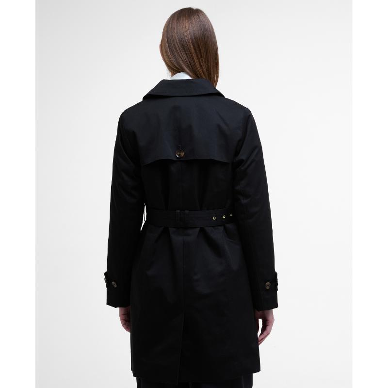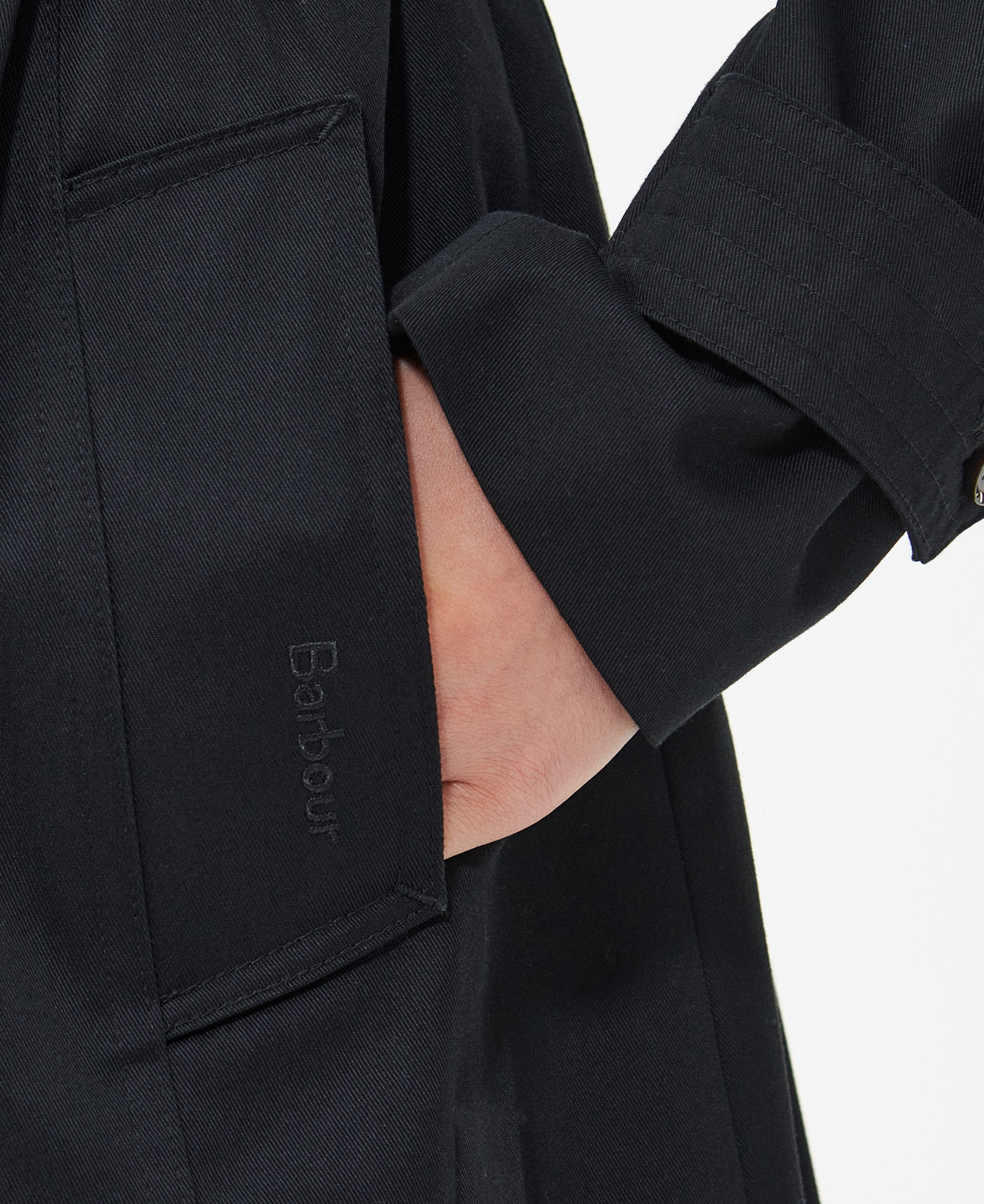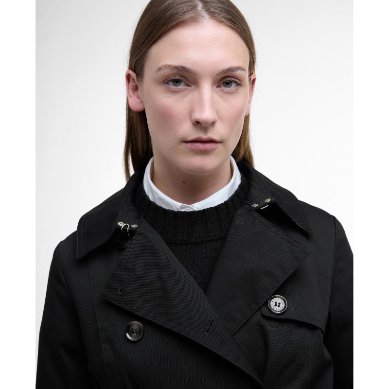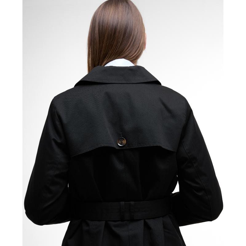 Barbour Short Greta Ladies Showerproof Trench - Black/Ancient Poplar