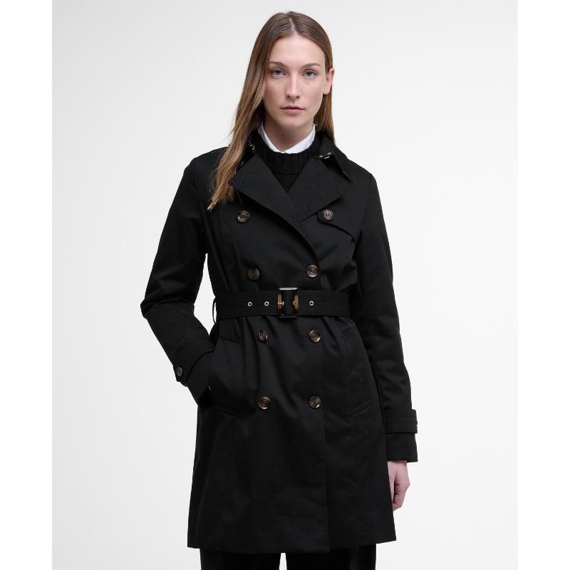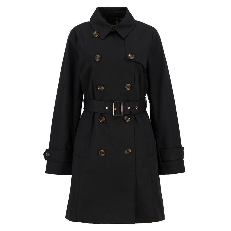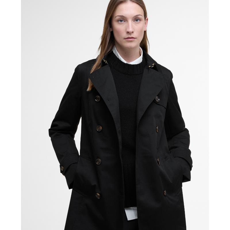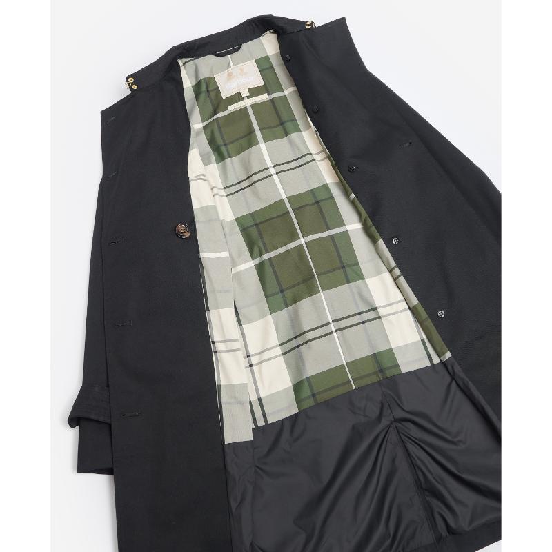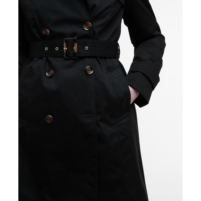 Barbour Short Greta Ladies Showerproof Trench - Black/Ancient Poplar