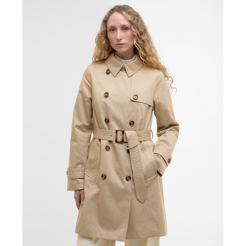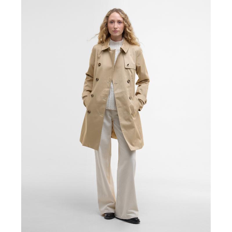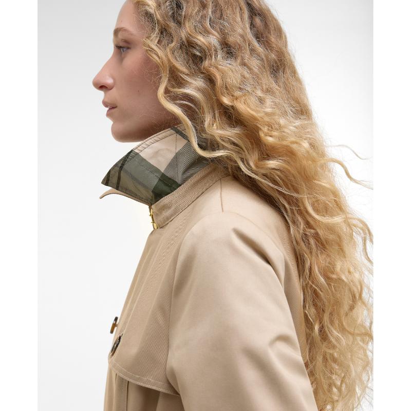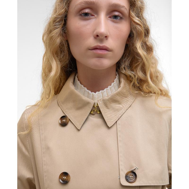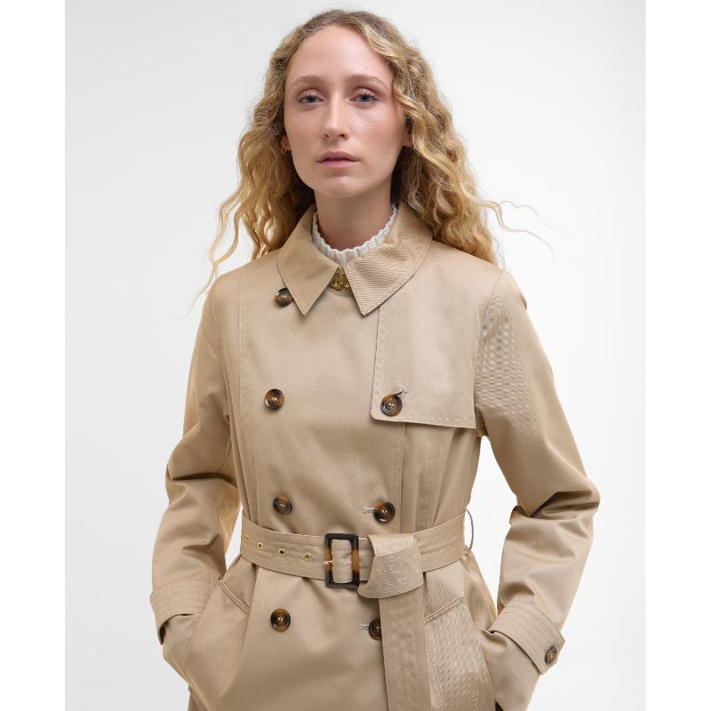 Barbour Short Greta Ladies Showerproof Trench - Light Fawn/Ancient Poplar