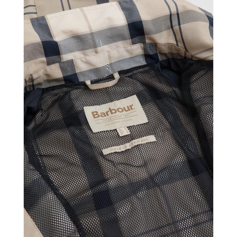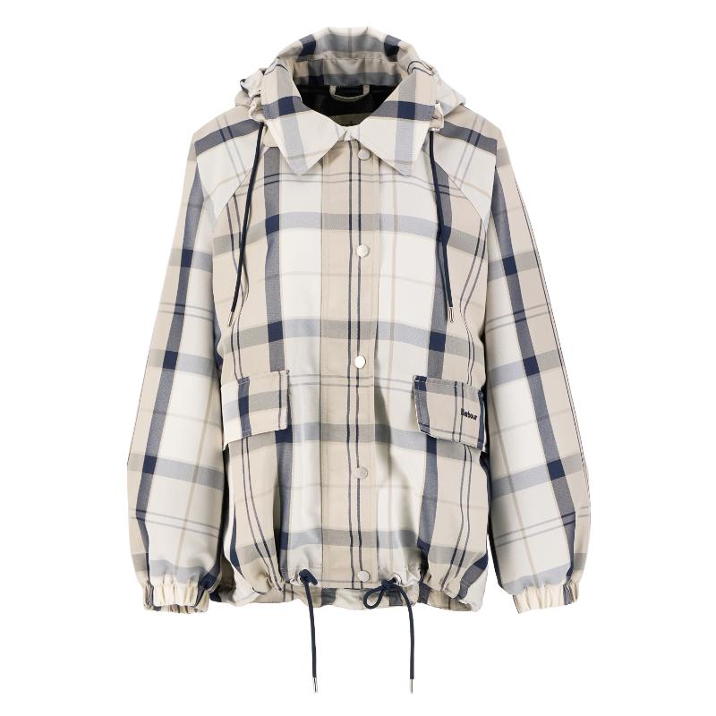 The Barbour Ballina Check Showerproof Jacket merges contemporary aesthetics with time-honoured functionality. This oversized silhouette showcases a striking check pattern, complemented by a detachable hood and strategically positioned flap pockets for practical storage. Adjustable drawcords at both the hem and hood enable precise shaping, whilst studded front fastening provides secure closure. The breathable mesh lining works in concert with the showerproof fabric to deliver reliable weather protection without compromising on comfort—an essential piece for navigating Britain's variable climate with understated sophistication.