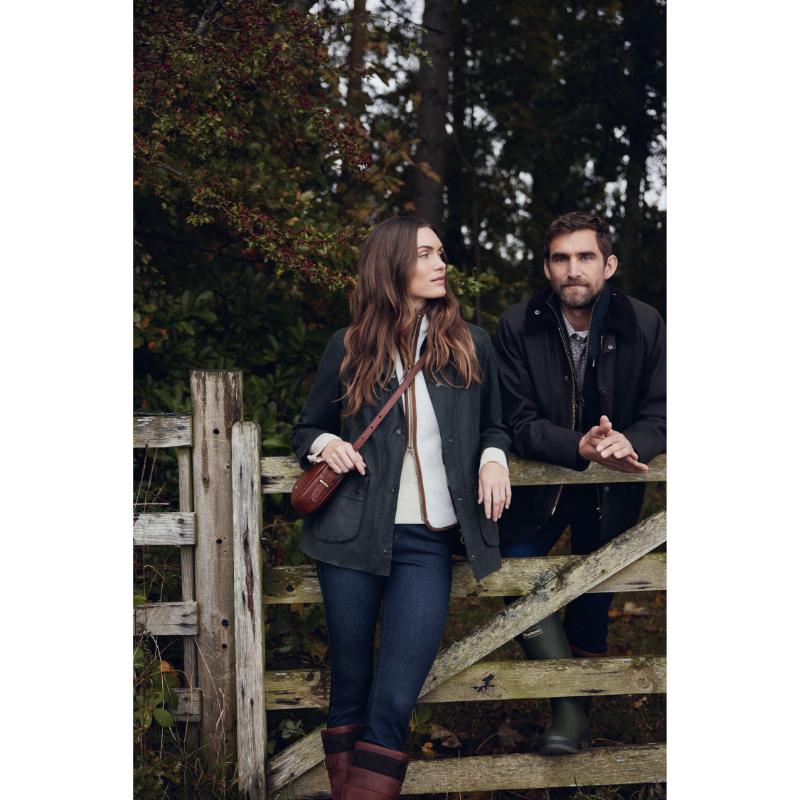The Barbour Classic Beaufort Mens Wax Jacket combines timeless country style with practical features. Crafted with a durable Sylkoil outer and a 100% cotton tartan lining, it offers year-round versatility. Its relaxed fit suits both outdoor adventures and city commuting, easily worn over a suit. The jacket includes a soft corduroy collar with studs for an optional hood, a two-way zip with storm fly, and hook and loop fastening wind cuffs to block drafts. Two lower bellow pockets provide ample storage, while an interactive zip allows attachment of a quilted liner for added warmth.