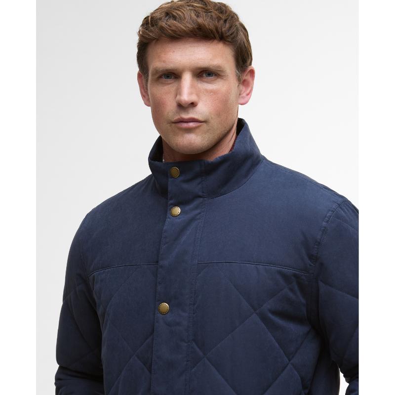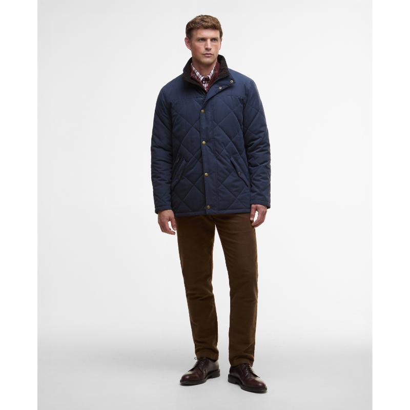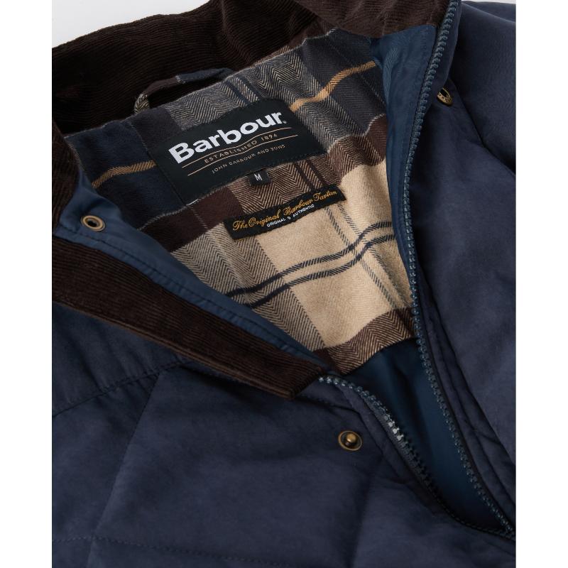 Introducing the Barbour Elter Quilted Men's Jacket - a versatile and stylish addition to your wardrobe. Crafted with a microfibre outer and a four inch box quilted design, this jacket offers both comfort and durability. Featuring two welt pockets, one zip jetted pocket, and an adjustable waist, it provides practicality and style. Completed with inner needlecord at the collar for added comfort. Classic fit for a timeless look.
