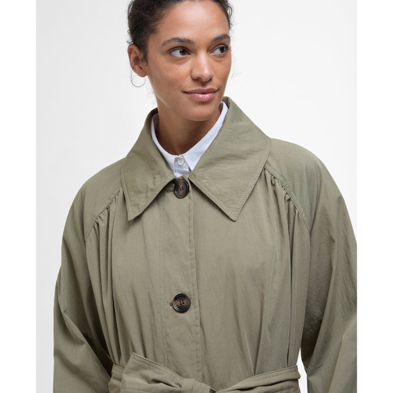 Barbour Garbo Ladies Showerproof Trench Coat - Dusky Green/Rosemary Tartan
