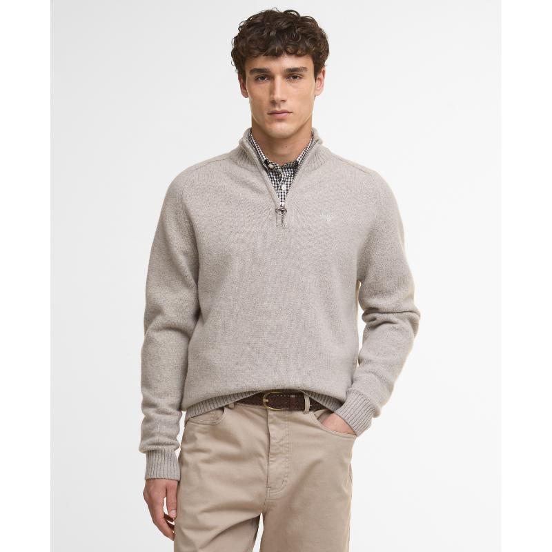 Barbour Grangetown Mens 1/4 Zip Knitted Jumper - Light Grey