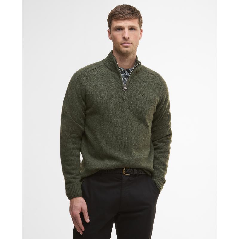 Barbour Grangetown Mens 1/4 Zip Knitted Jumper - Mid Olive