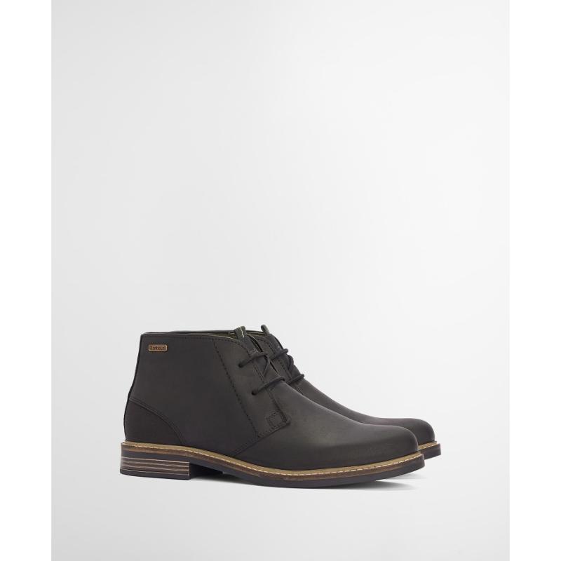 Effortlessly elevate your smart casual look with the Barbour Readhead chukka boots. Made from high-quality leather and suede, these boots offer classic two eyelet styling and a rounded profile for a casual yet stylish appearance. The canvas heel quarter and branded rubber outsole add durability, while the discreet metal Barbour logo badge adds a touch of sophistication. Complete with the signature Barbour Walking Man motif on the tread, these boots are a must-have staple in your wardrobe.