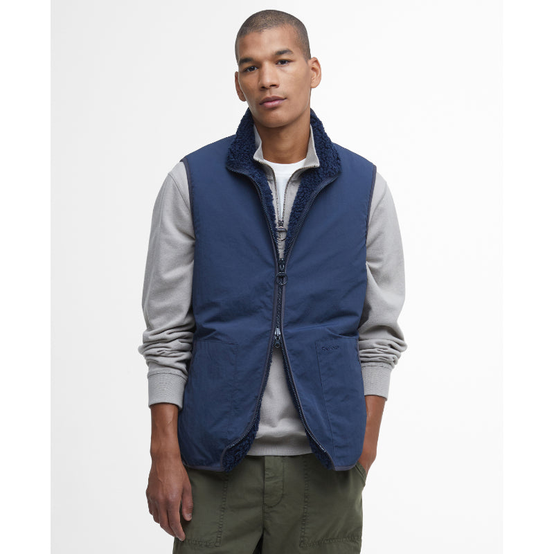 The Barbour Reversible Fleece Mens Gilet offers versatility and warmth, with a two-in-one design featuring a cozy fleece and tonal fabric. The Barbour plaque and signature ring-pull add iconic details. Perfect for any style, this gilet guarantees optimal warmth.