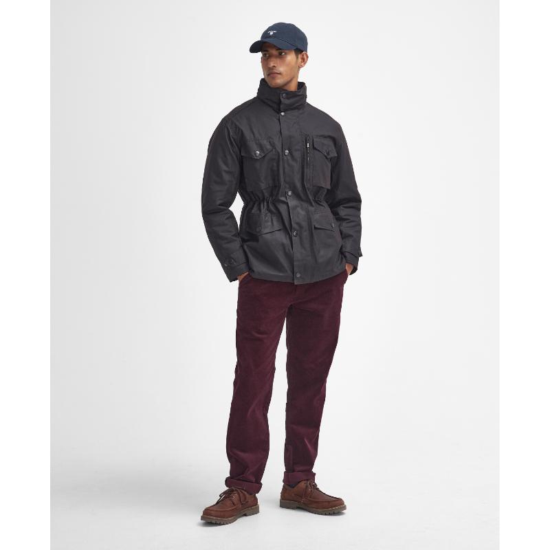 The Barbour Sapper Mens Waxed Jacket is military inspired and brilliantly designed mid-weight waxed cotton jacket with a warm quilted lining. Designed for those to be active outdoors, the Sapper also features an action back with adjustable waist allowing complete freedom of movement, corduroy lined funnel neck, adjustable cuffs, stowaway hood and inner zipped pocket. Easy to wear and stylish and practical.