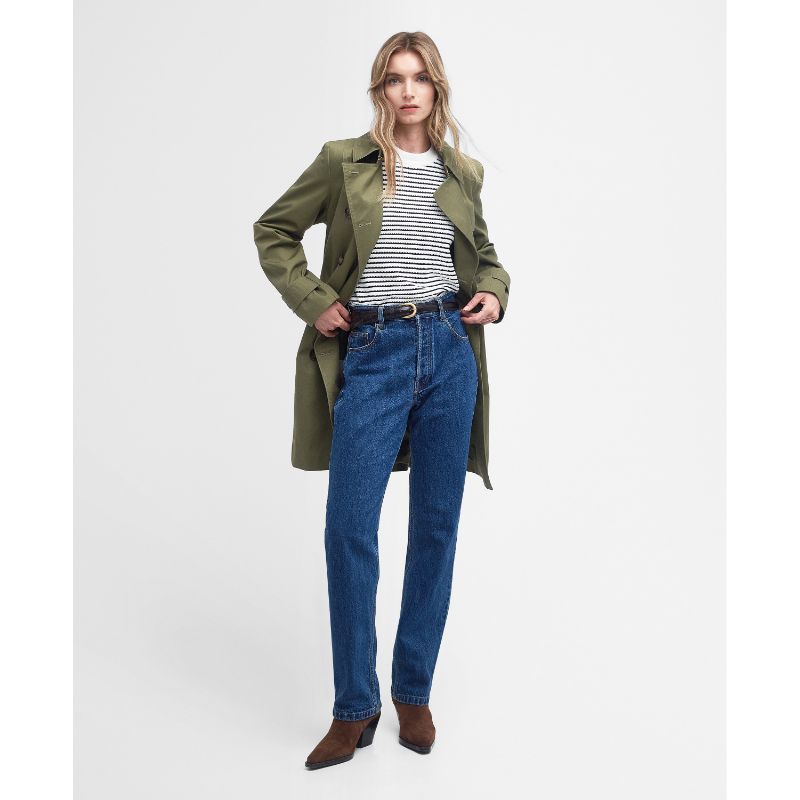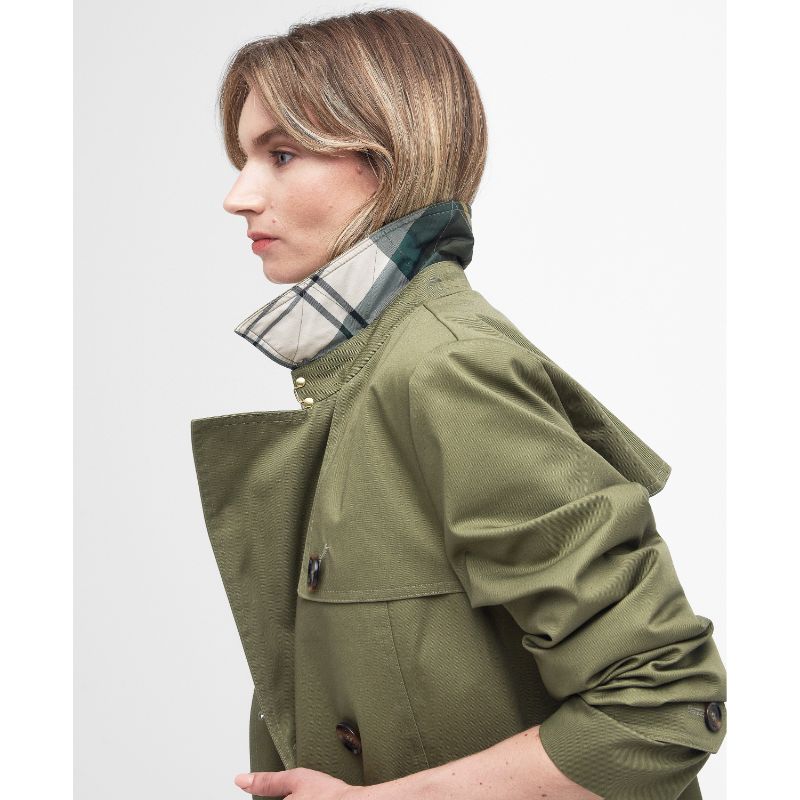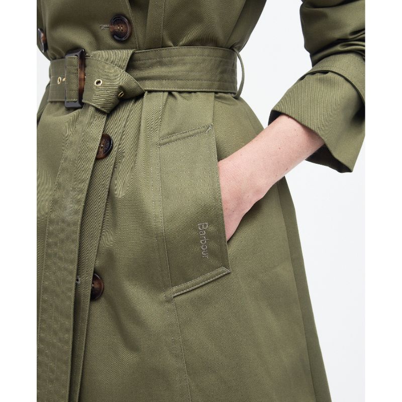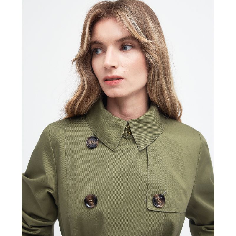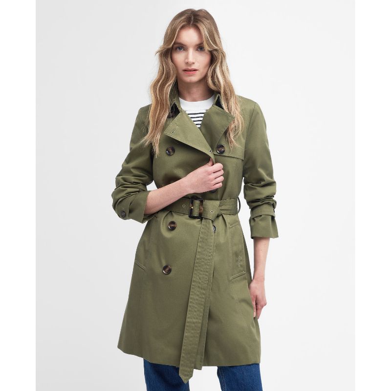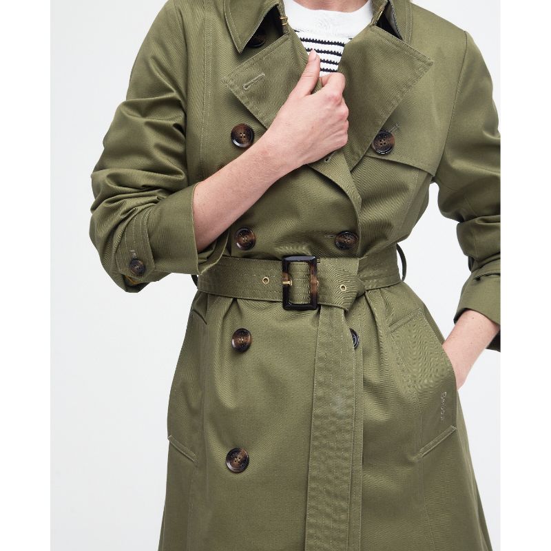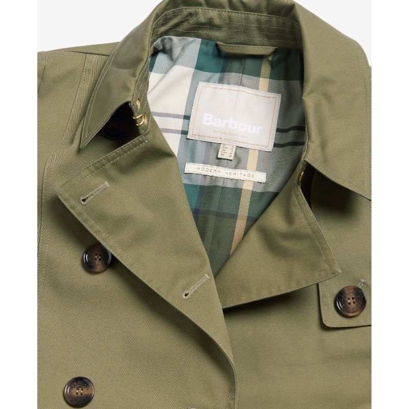Barbour Short Greta Ladies Showerproof Trench - Burnt Olive/Ancient Poplar