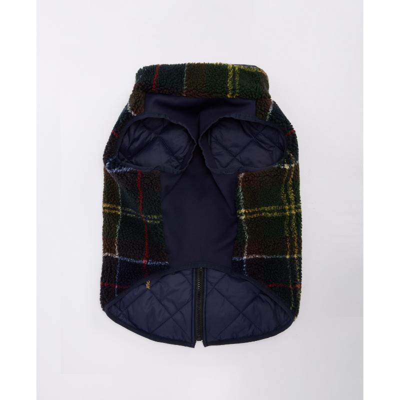 The Barbour Field Reversible Dog Coat offers versatile style and practical warmth for your dog. One side features classic Barbour tartan fleece, delivering heritage charm and cosy insulation, while the reverse side showcases a durable quilted design for added protection. A chunky zip along the back ensures easy dressing, and the stretch fabric on the front chest panel provides a comfortable, flexible fit. This reversible coat combines functionality and style, making it ideal for keeping your dog warm and comfortable during outdoor adventures.