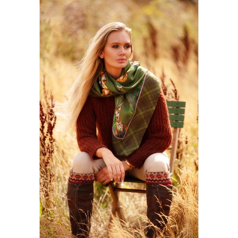 Clare Haggas Caledonia Large Square Pure Silk Scarf - Moss Green