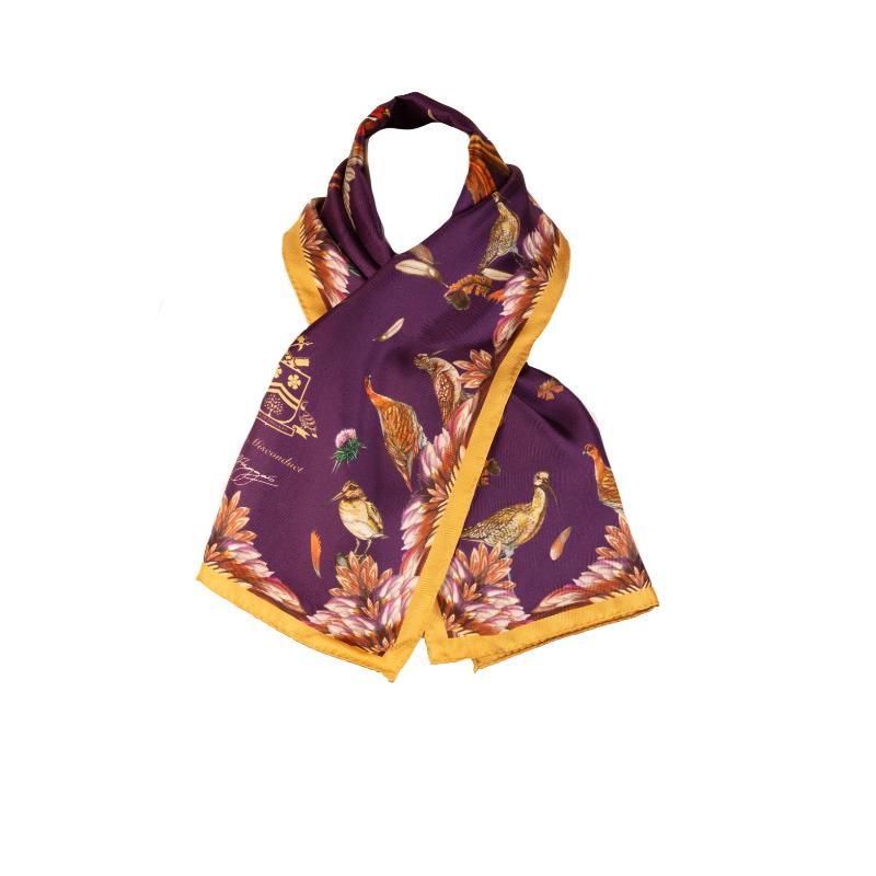 Clare Haggas Grouse Misconduct Narrow Silk Scarf - Aubergine & Gold