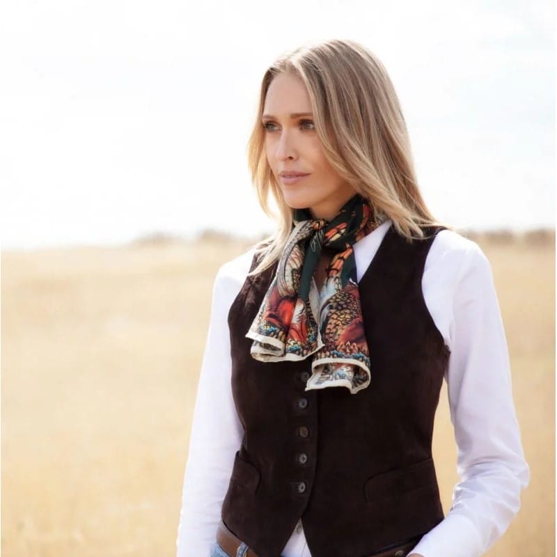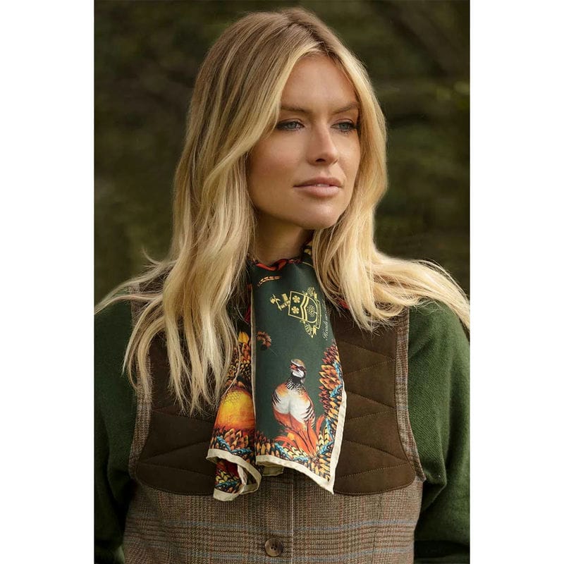 The Clare Haggas Heads or Tails Narrow Twill Silk Scarf is crafted in England using the finest 100% pure silk twill with hand rolled edges. Featuring majestic cock pheasants with their flamboyant plumage, the rather dignified French partridge, and a glorious feather border, all displayed on a vibrant background, Heads or Tails makes a beautiful, lively design. The rich colour palette and luxurious depth of detail makes this scarf suitable for all occasions, whether you're dressing up or aiming for casual country style.
