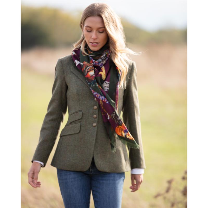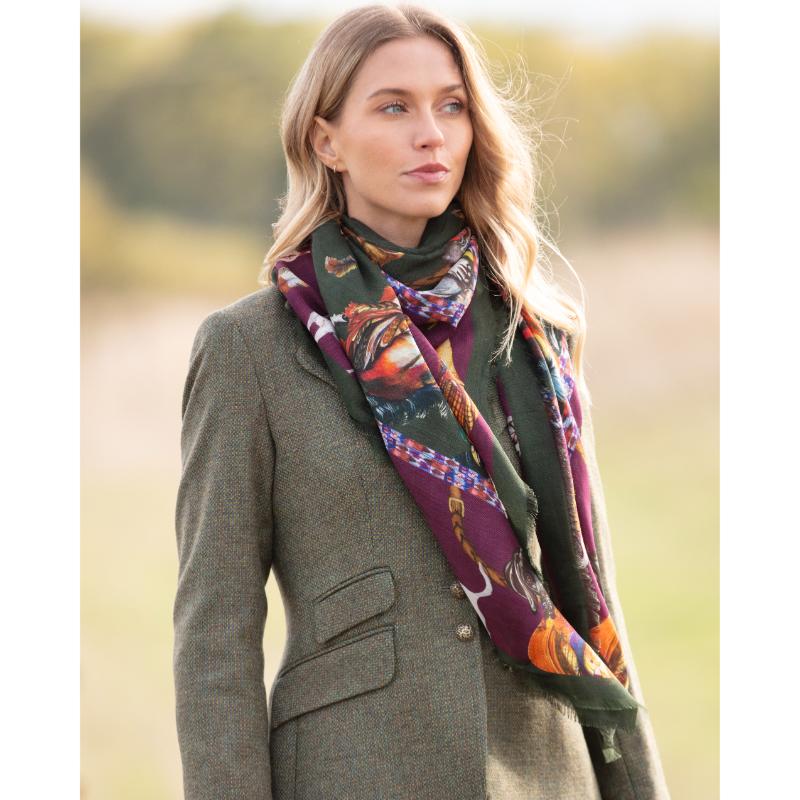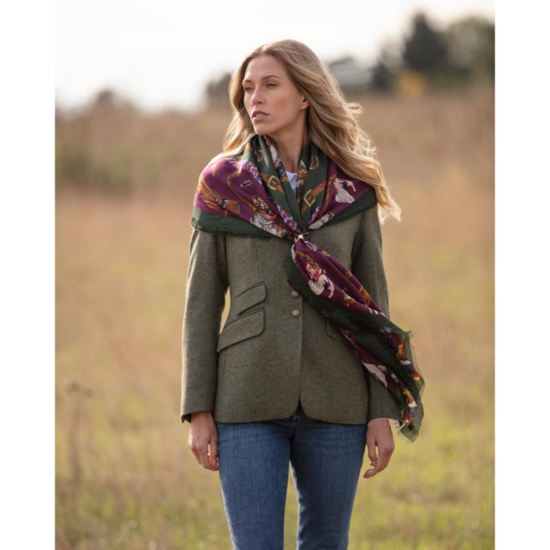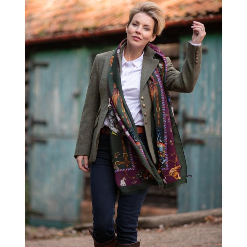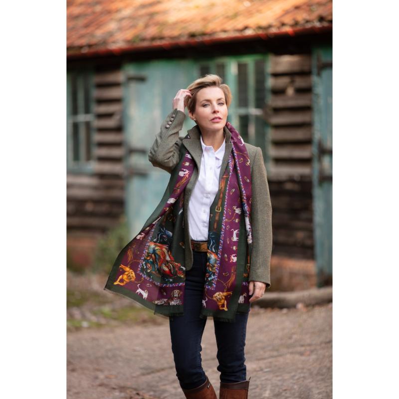 The "It’s a Dog’s Life" wool silk shawl celebrates the spirit of versatile hunting breeds, from the noble pointer and loyal labrador to the energetic spaniel and determined retriever. Clare Haggas captures each breed’s unique character with detailed artistry, including spirited terriers and Jack Russells known for their intelligence and tenacity. This hunter green and oxblood red shawl combines elegance with a tribute to these exceptional working dogs. This wool silk shawl honours beloved hunting dogs, celebrating their importance both at home and in the field. Clare Haggas pays tribute to these admired animals with a design that resonates with dog lovers and outdoor enthusiasts alike.
