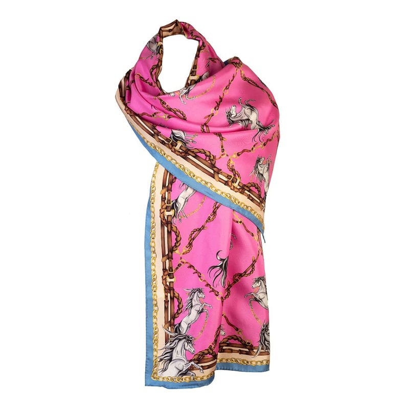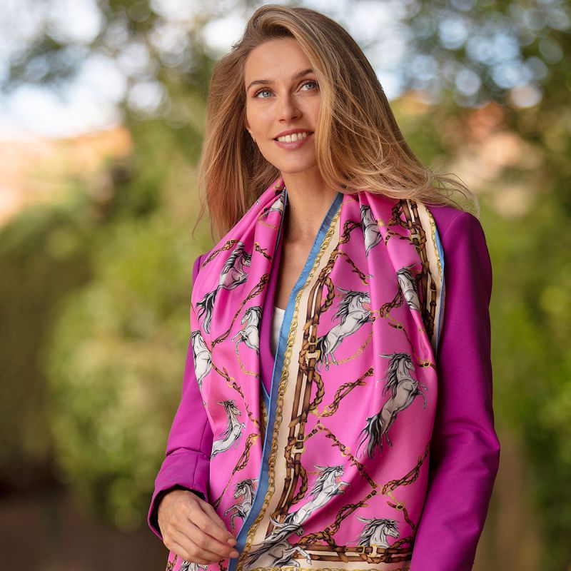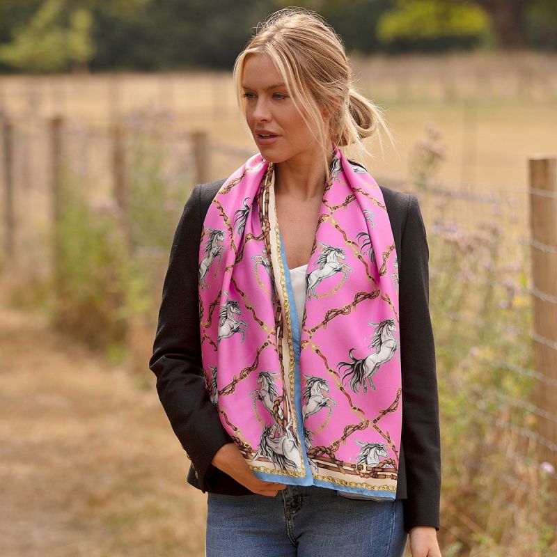 Clare Haggas Rearing To Go Classic Silk Scarf - Hot Pink & Cobalt