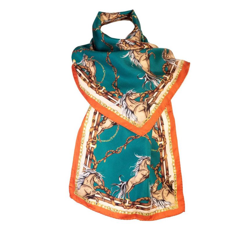 Clare Haggas Rearing To Go Narrow Silk Scarf - Teal & Rust
