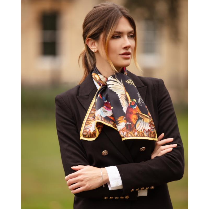 Clare Haggas Turf War Narrow Silk Scarf - Black & Gold