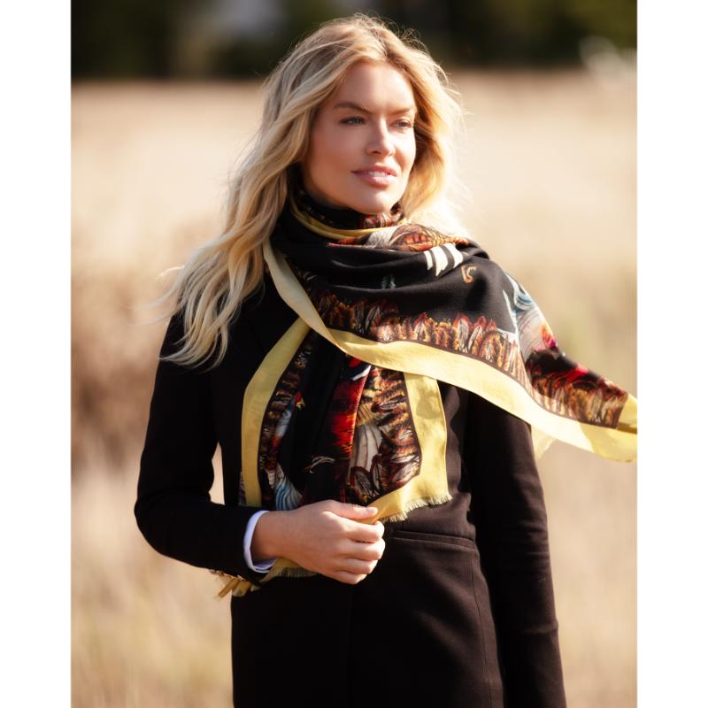 Clare Haggas Turf War Wool Silk Wrap - Black & Gold