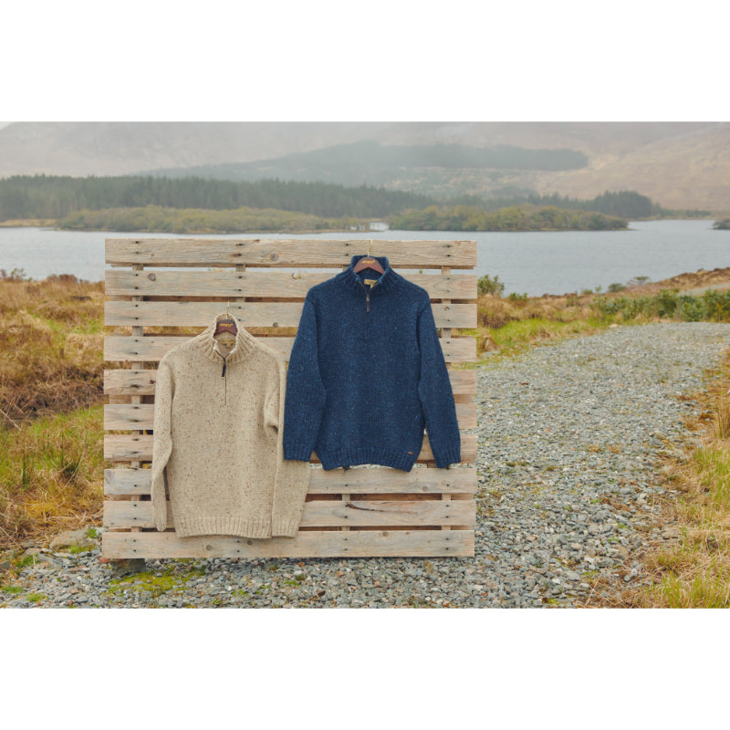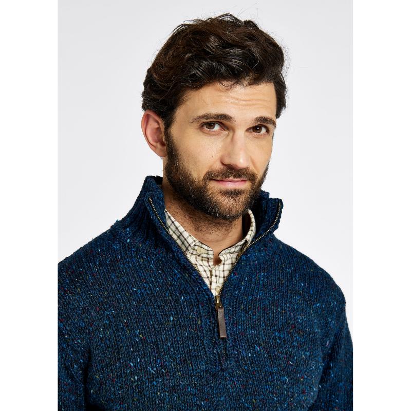 Dubarry Callaghan 1/4 Zip Mens Irish Donegal Wool Knit Jumper - Navy