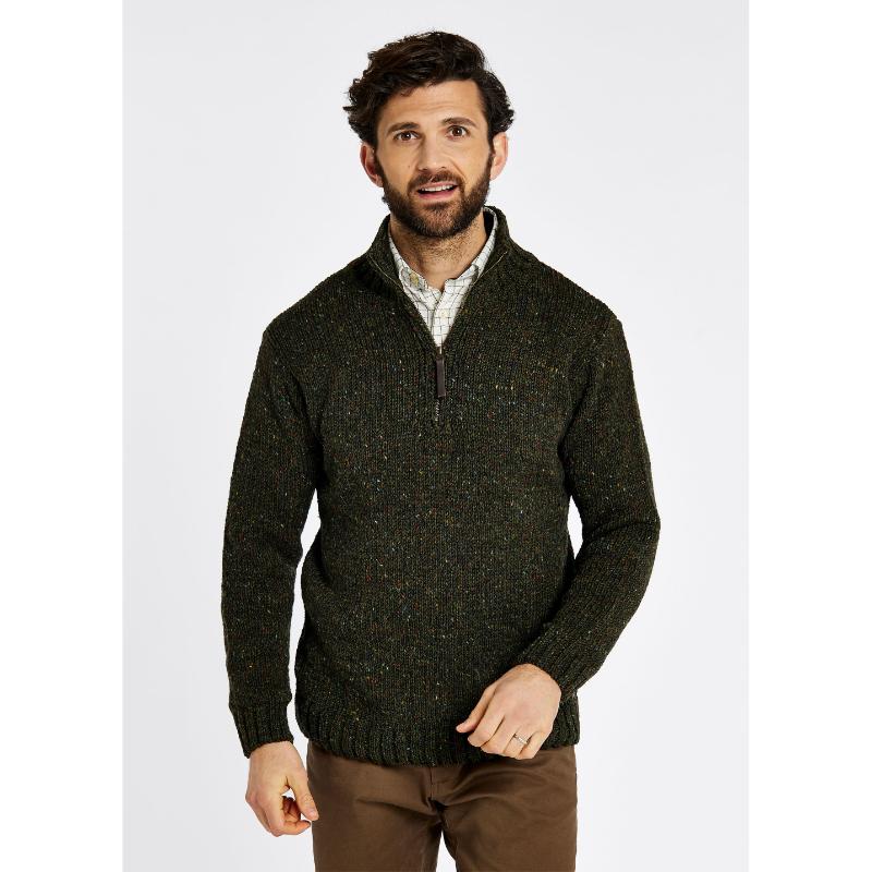 Dubarry Callaghan 1/4 Zip Mens Irish Donegal Wool Knit Jumper - Olive