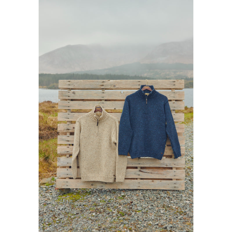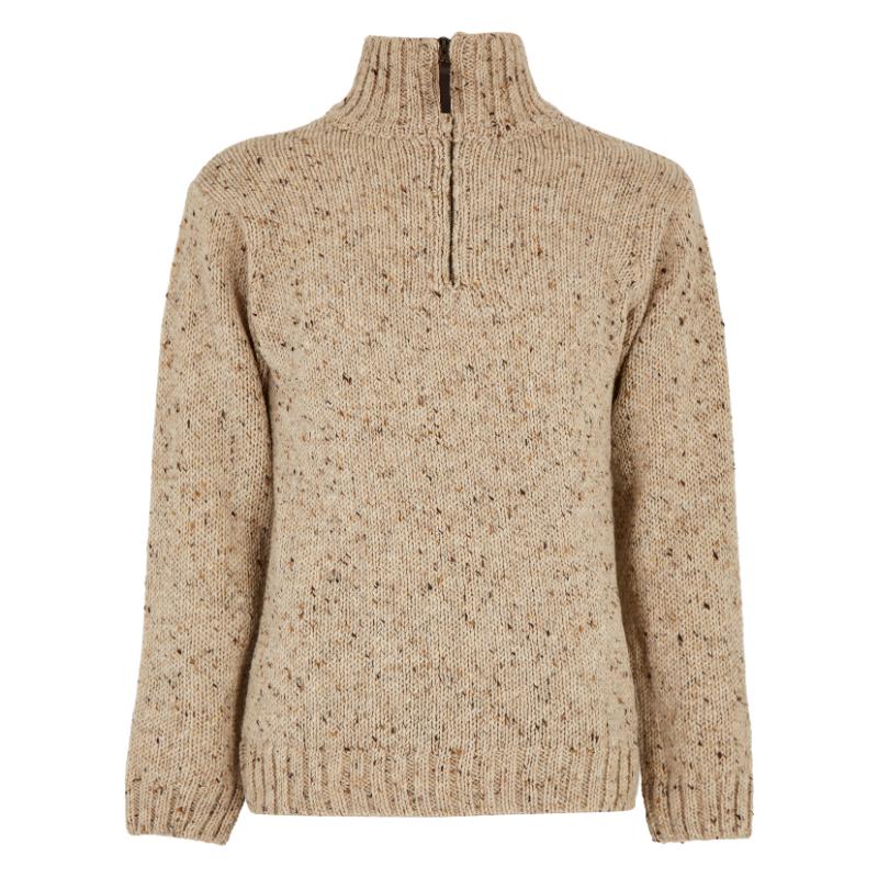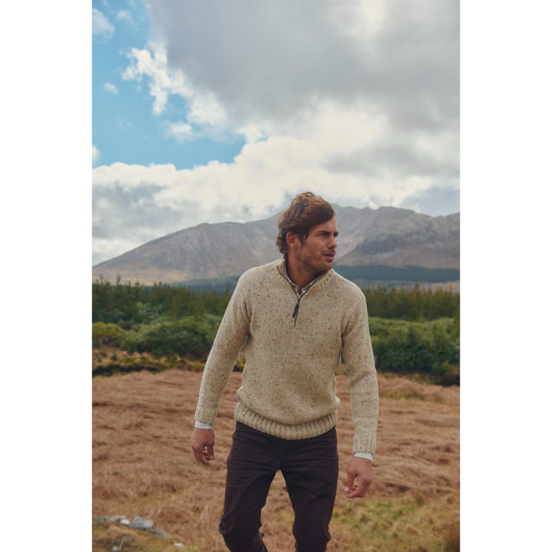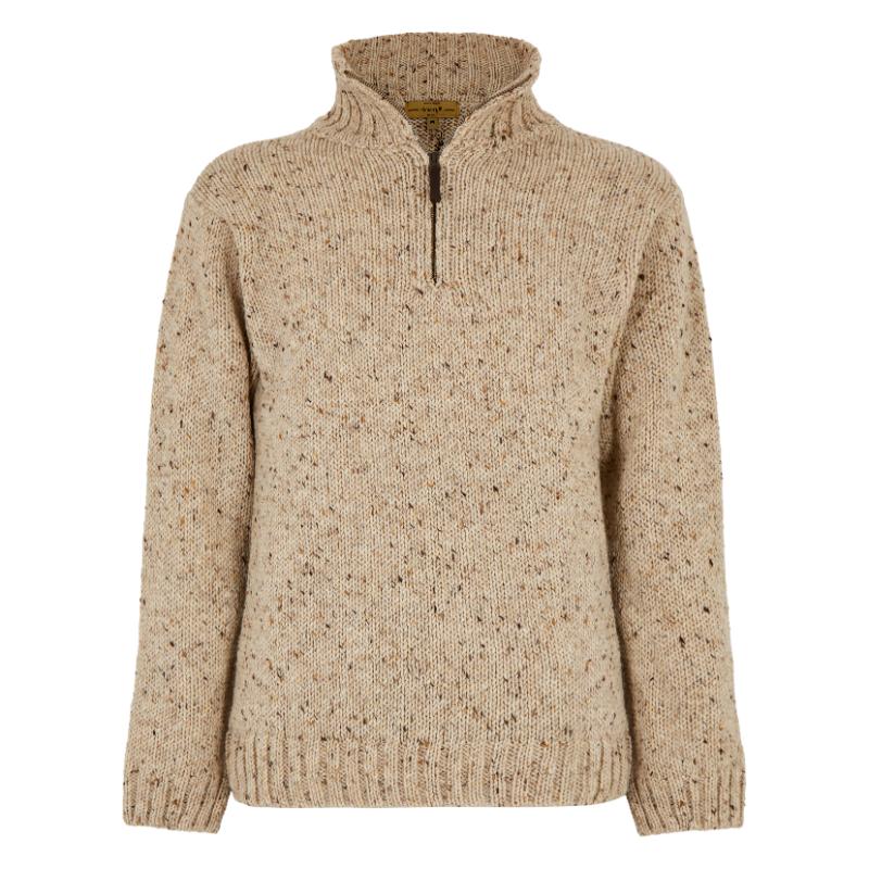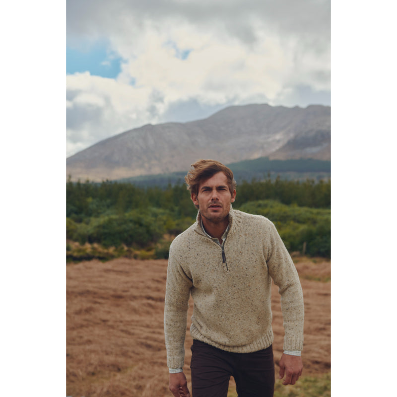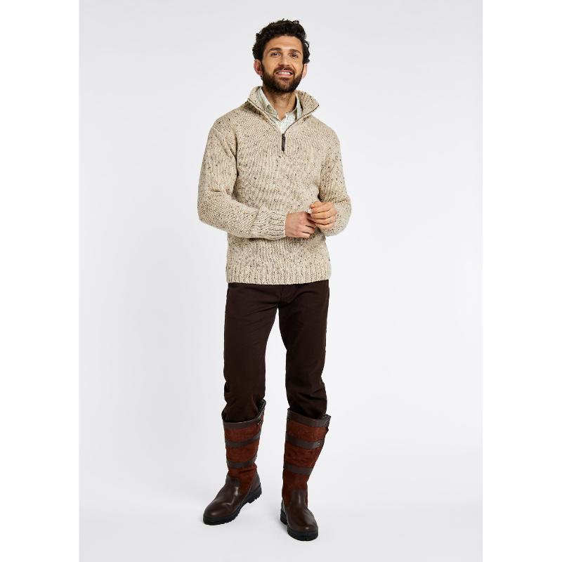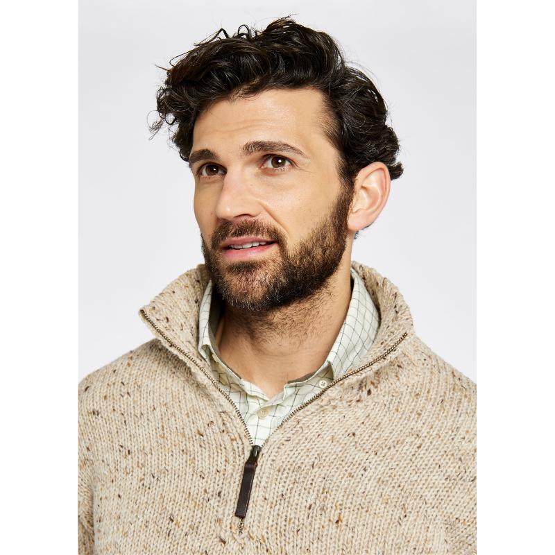 Dubarry Callaghan 1/4 Zip Mens Irish Donegal Wool Knit Jumper - Stone
