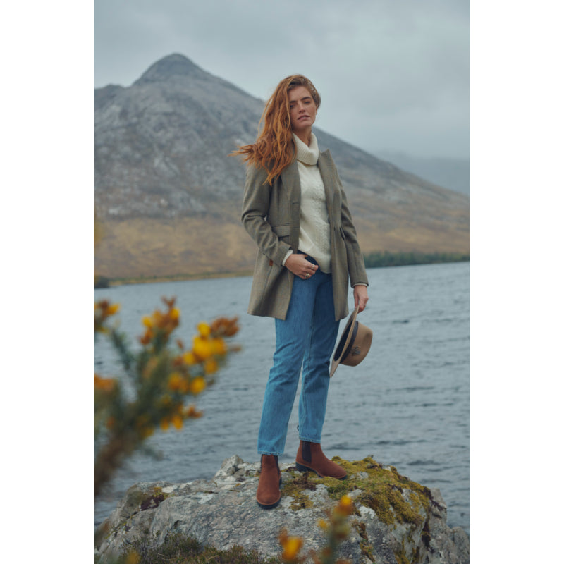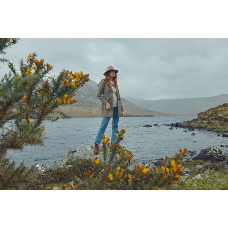 The Gallagher Ladies Felt Fedora Hat from Dubarry is a wonderful finishing touch to your outfit, whether you're in the field, at the races or running errands in style. Crafted from a durable heavy duty felt with a chic leather band, delicately trimmed with a cluster of beautiful gamebird feathers and featuring an internal headband for added comfort.