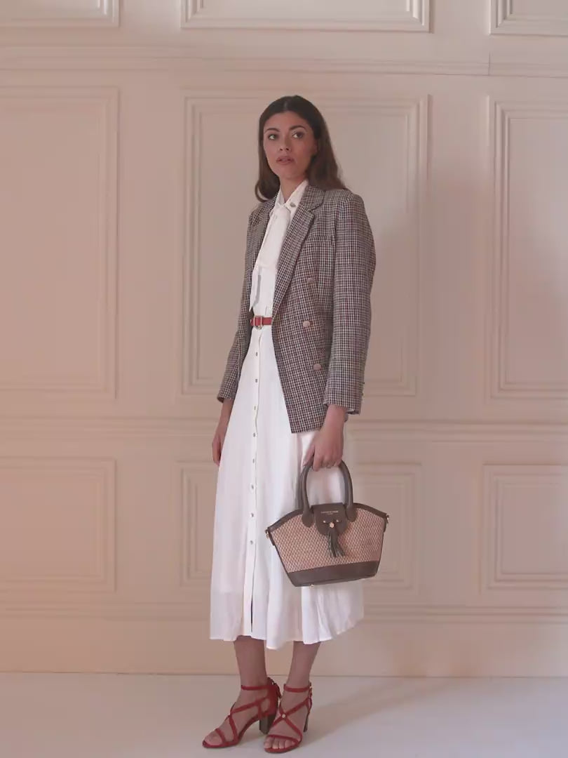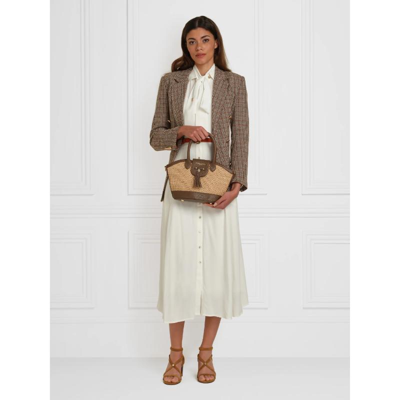 The acclaimed Fairfax & Favor Mini Windsor Bag is back in a unique, seasonal style, offering the ideal accessory for summer events. Featuring a detachable shoulder strap, magnetic closure, and mini bag tassel, this innovative basket bag is the perfect accompaniment for picnics, walks, or wearing a maxi dress and large hat.