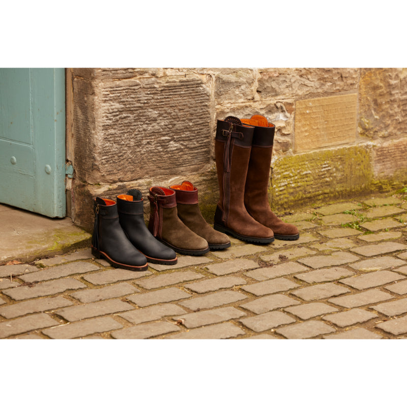 Master the elements in Penelope Chilvers Cropped Inclement boots—where refined aesthetics meet uncompromising weather protection. Built from responsibly sourced suede with dual-layer defence: oiled finish and Scotchgard™ treatment ensure 20 hours of waterproof reliability. An integrated inner gusset fortifies vulnerable areas, whilst Texalive™ lining—a cutting-edge breathable membrane—actively manages moisture, maintaining foot comfort through vigorous outdoor pursuits. Equally at home on country estates or challenging terrain, these boots deliver the dry, warm performance serious outdoor enthusiasts demand.
