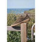 Introducing the R.M.Williams Sandbar, the ultimate mens trainer crafted from premium suede leather. Made with an innovative, plastic-free sole by Natural Fibre Welding, this trainer is both stylish and environmentally-friendly. Expertly crafted to provide superior comfort and durability, these trainers feature a luxurious leather lining and soft cotton tonal laces. Experience luxury and sustainability with every step in these Portuguese-made trainers.