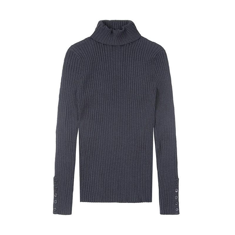 Guinea Skinny Rib Ladies Merino Roll Neck Knit - Grey
