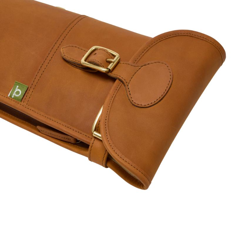 As a quintessential shooting accessory, the Buckle Leather Gun Slip strikes a perfect balance between style and substance. Made with premium pull up leather in brown, it features a zip closure, blocked end, and adjustable-length shoulder strap. Its sleek appearance is completed with stylish brass buckles and hardware. Perfect for days in the field or at the clay ground.