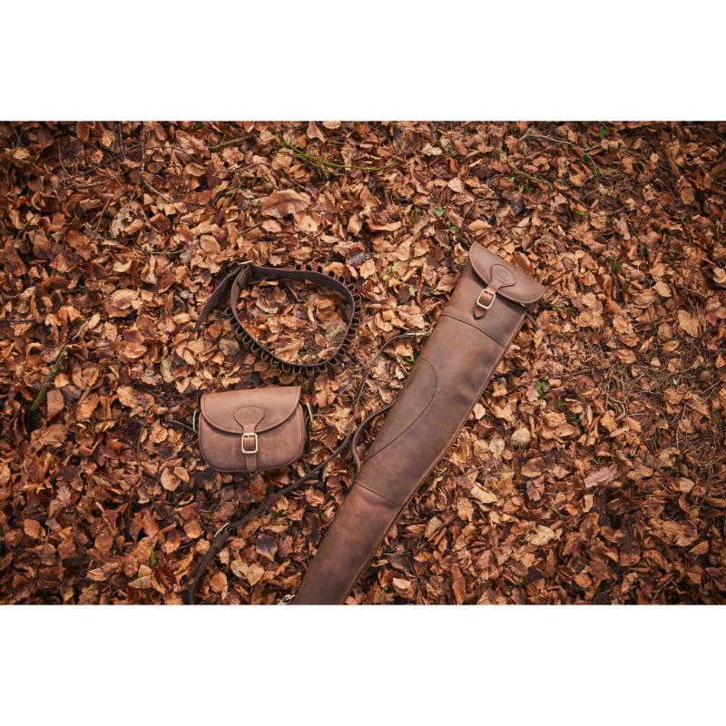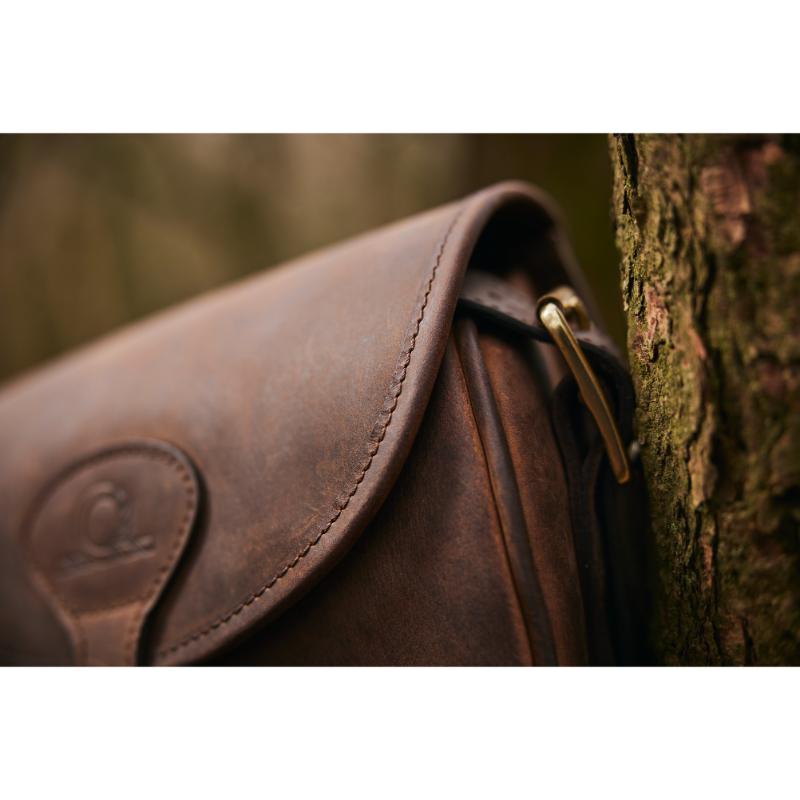 Safely store and protect your cartridges with this classic Leather Cartridge Bag. Crafted from premium antique oiled leather, it offers a vintage finish and has a 100 cartridge capacity. The adjustable shoulder strap ensures a perfect fit, with stylish brass hardware for added durability. Expertly designed for in the field use.