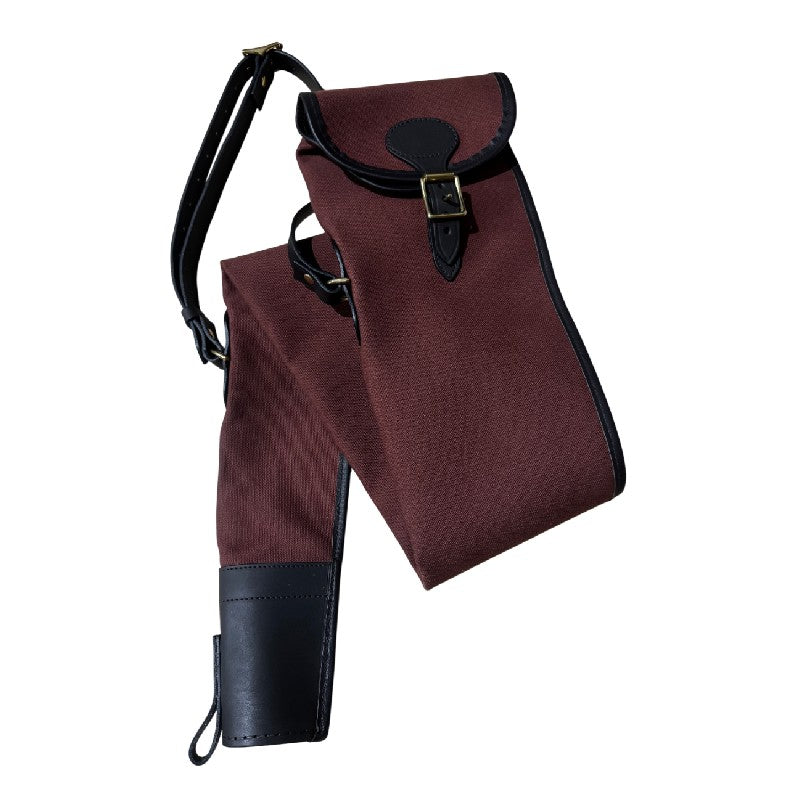 This William Powell Rosedale Canvas & Leather Roll-Up Shotgun Slip offers expert craftsmanship and durability with a traditional flap and buckle opening. With no lining, this flap and buckle slip is designed to be easily ‘rolled up’ when not in use and therefore easily stored. Made with 100% cotton canvas in a gorgeous Fox Tan colourway and vegetable tanned bridle leather straps. Featuring a durable leather shoulder sling and a hand sewn blocked muzzle end for added protection.