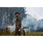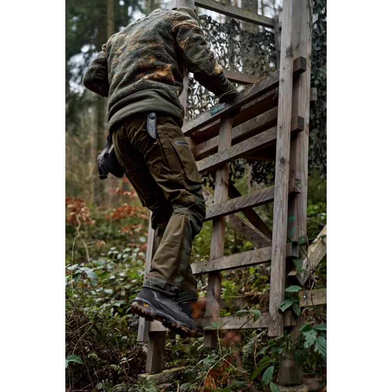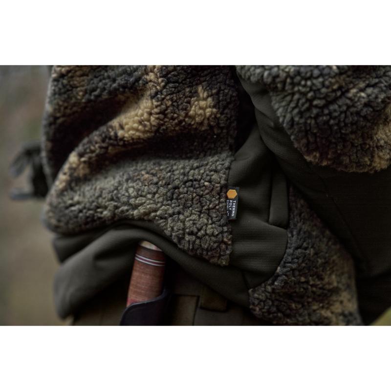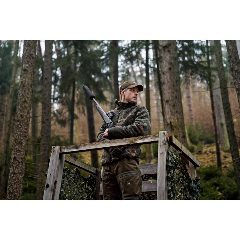 The Harkila Tyst Camo Men's Insulated Jacket is engineered for hunters who demand stealth, warmth, and freedom of movement. Featuring a tightly knitted high-loft fabric, it offers wind resistance and silent operation, perfect for remaining undetected. Its AXIS MSP® Quantum camouflage in dark earth tones blends flawlessly with autumn environments. Filled with Thermo Poly Shield™ insulation, the jacket ensures lasting warmth during extended periods of stillness. Stretchable, silent panels under the arms and along the sides provide unrestricted mobility, making it an essential piece for serious hunting. Features a 2-way zip with storm placket, radio pocket, front pockets, and an adjustable hem for a secure fit. Designed for warmth and stealth, it allows excellent freedom of movement.