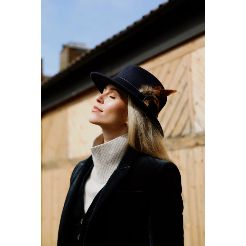 Hicks & Brown Chelsworth Coque & Pheasant Fedora - Navy