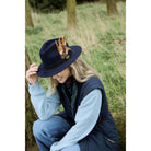 Hicks & Brown Suffolk Bronze Feather Fedora Hat - Navy