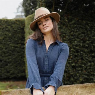 Hicks & Brown Suffolk Bronze Feather Wrap Fedora Hat - Camel