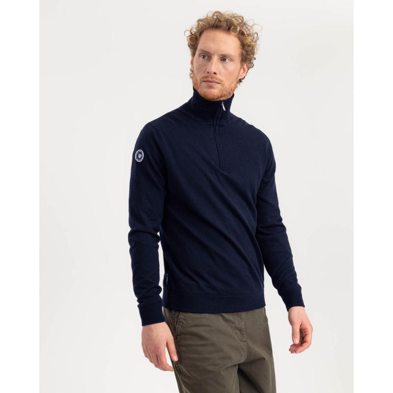 Holebrook Jesper Windproof Mens Merino Wool 1/4 Zip Jumper - Dark Navy