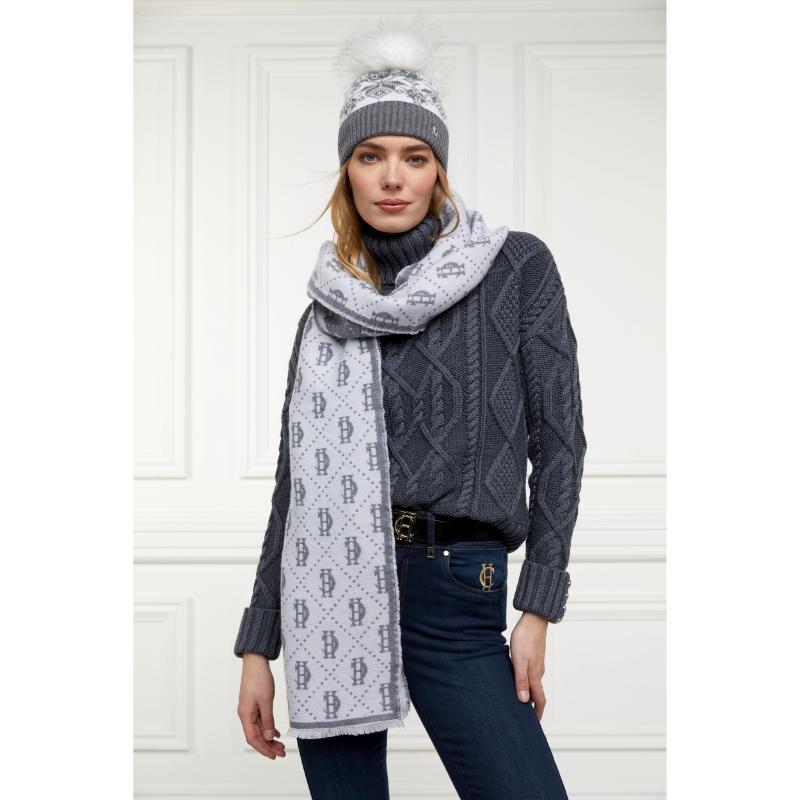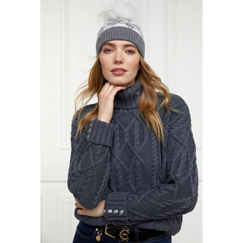 Holland Cooper Beatrice Ladies Bobble Hat - Grey Marl Cream