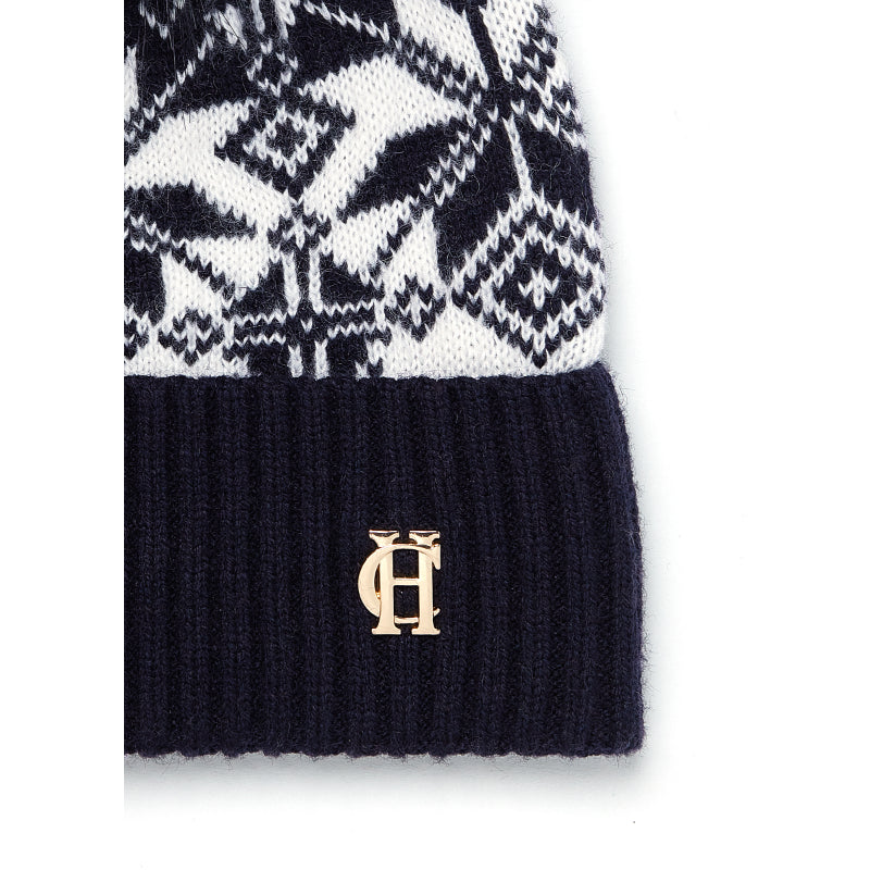 The Holland Cooper Beatrice Ladies Bobble Hat in Ink Navy Cream is the perfect addition to your winter wardrobe. Made to complement the Holland Cooper Beatrice Knit, this hat features a classic fairisle pattern and a large pom-pom for a touch of luxury. Complete with a gold HC pin, it's a timeless and stylish accessory.