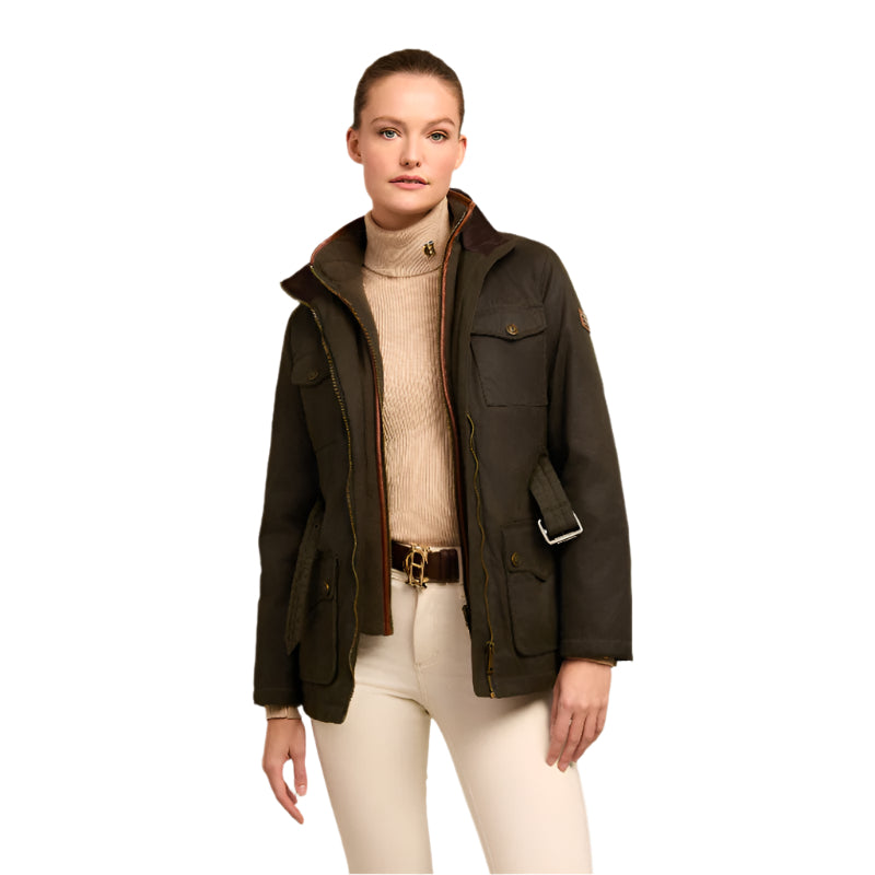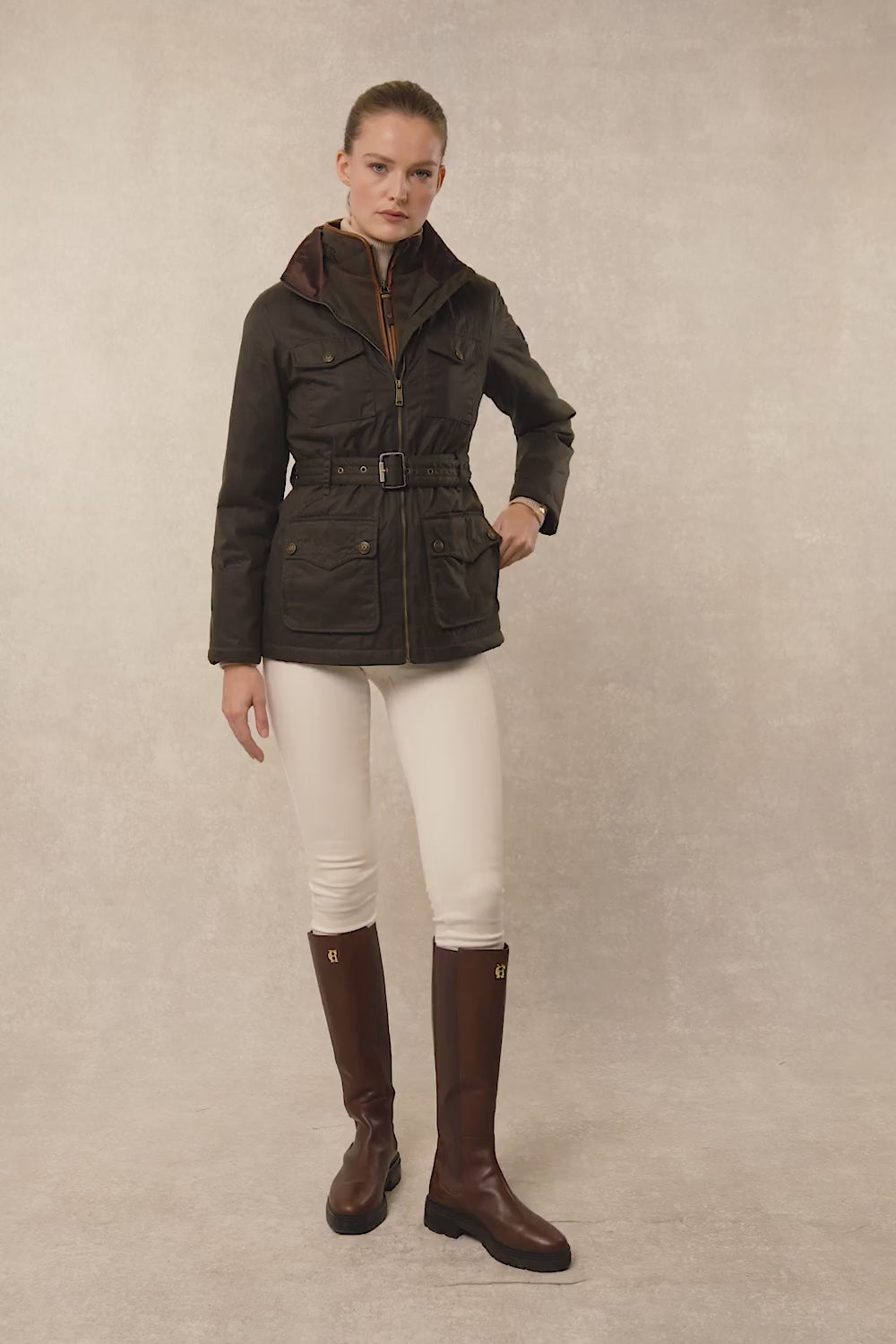 Holland Cooper Belted Waxed Ladies Jacket - Dark Olive