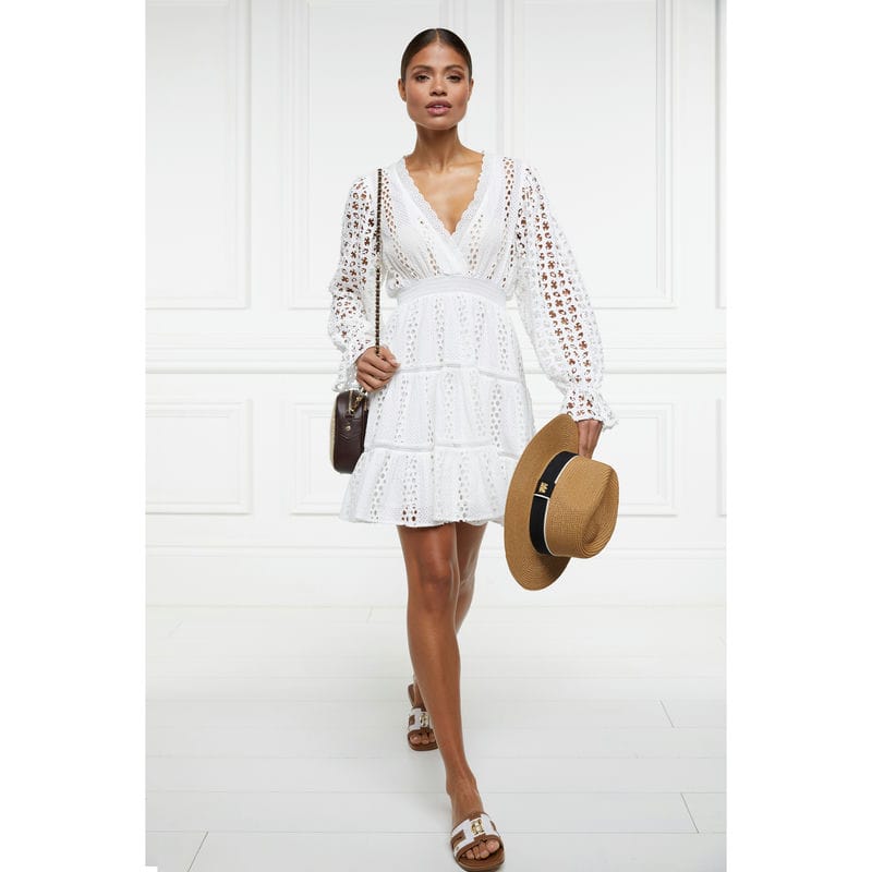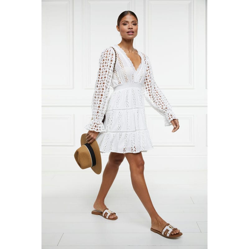 Holland Cooper Broderie Lace V-Neck Dress - White