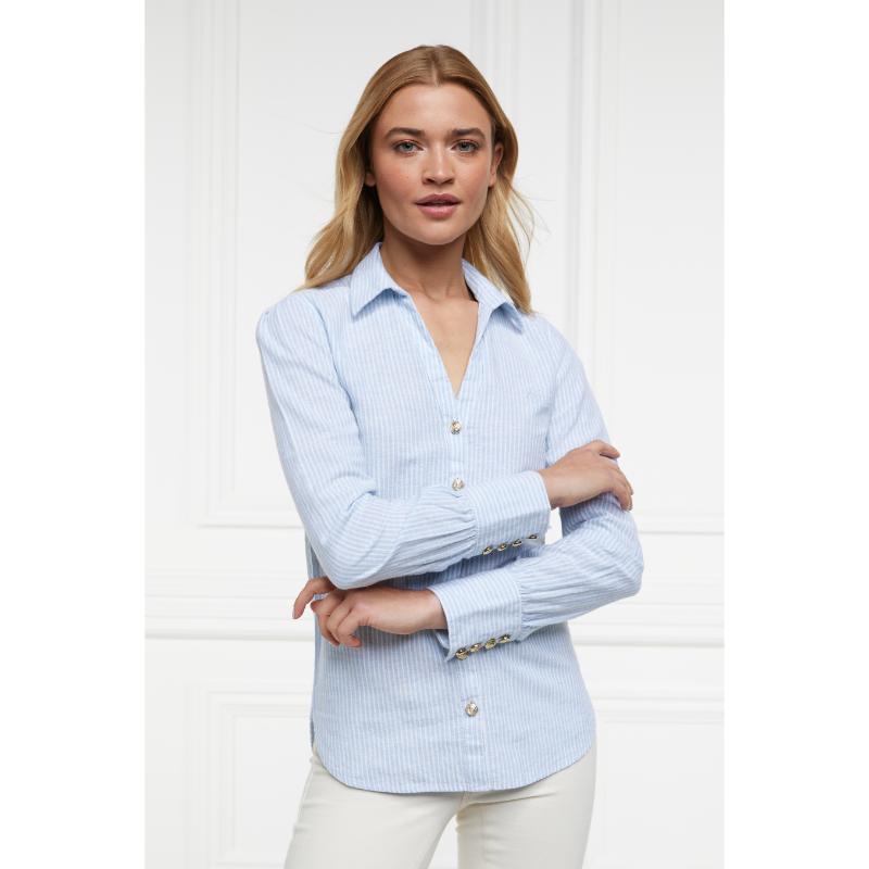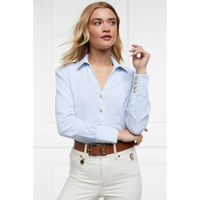 Holland Cooper Classic V-Neck Blouse - Azure Stripe