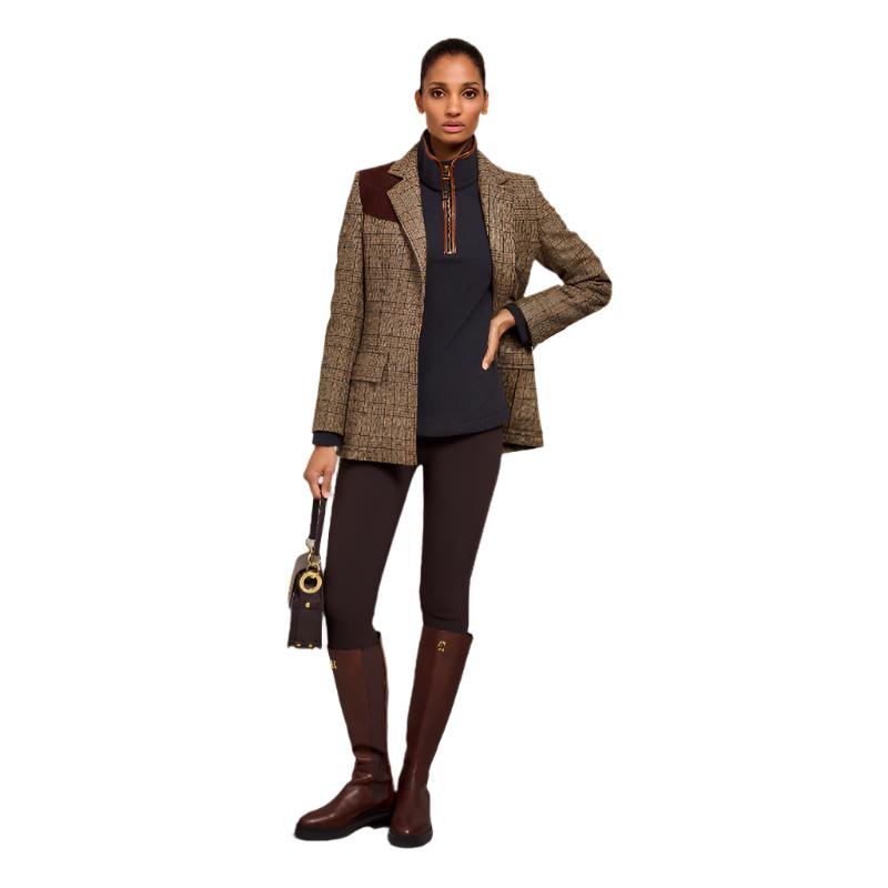 This Holland Cooper Country Ladies Fleece Quarter Zip Jumper is expertly constructed using technical polar fleece fabric for maximum warmth and comfort. Ideal for layering, it features contrasting faux leather piping detail, subtle HC embroidery on the chest, and unique quilted fleece elbow patches for enhanced comfort. The hidden seamed pockets provide a sleek and tailored fit whilst adding convenience. The finishing details include iconic Holland Cooper antique brass fastenings and metal hardware.
