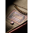 - Collar features quilted stitching