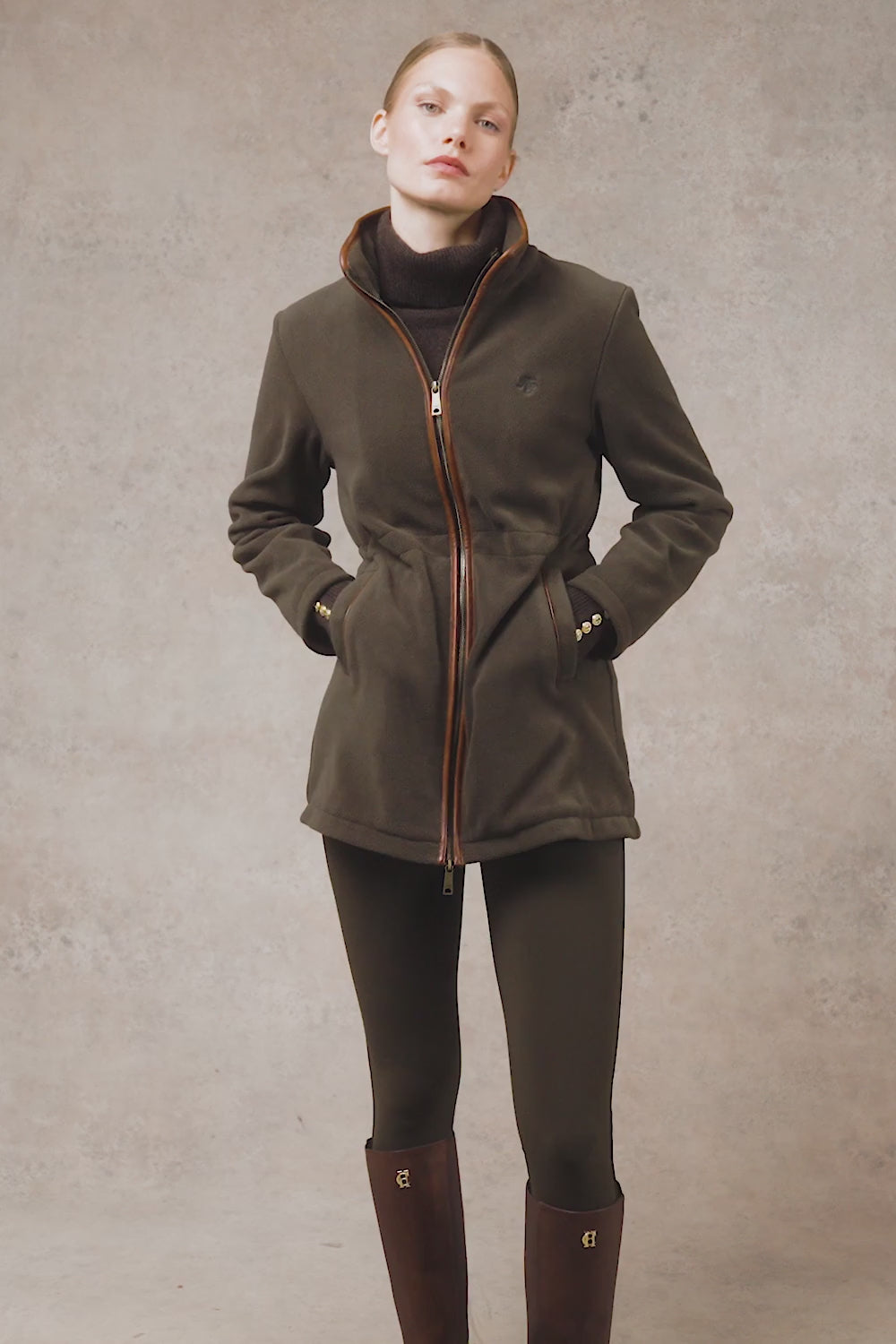 Holland Cooper Country Longline Ladies Fleece Jacket - Khaki