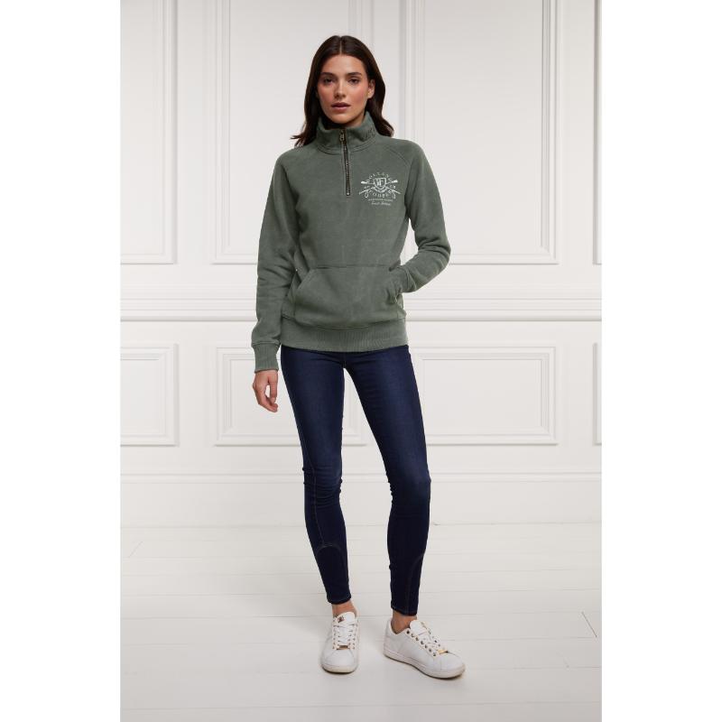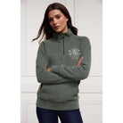 Holland Cooper Crest Zip Henley Ladies Jumper - Racing Green
